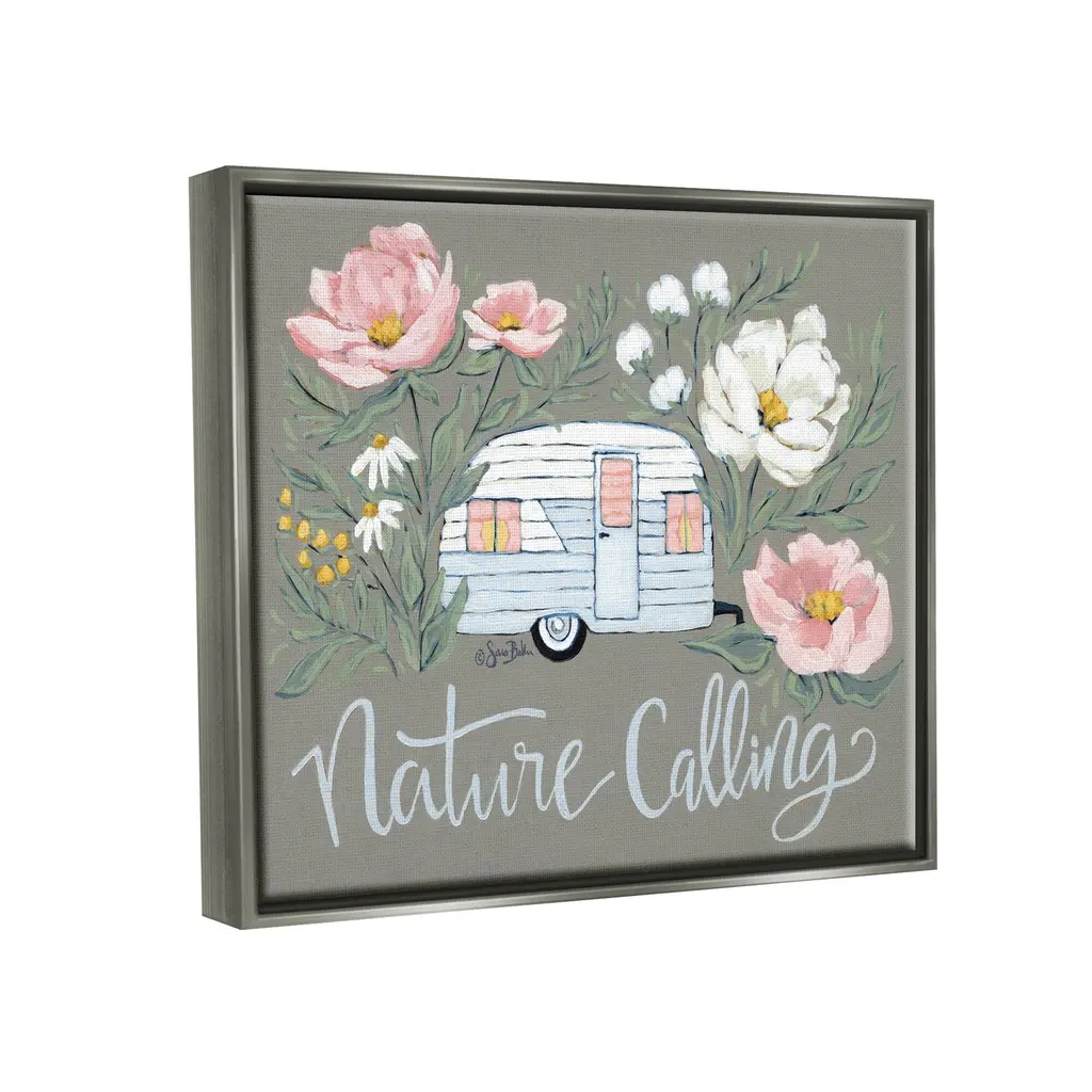 Stupell Nature Calling Floral Camper Framed Floater Canvas Wall Art Design By Sara Baker - 21 X 17 - Grey