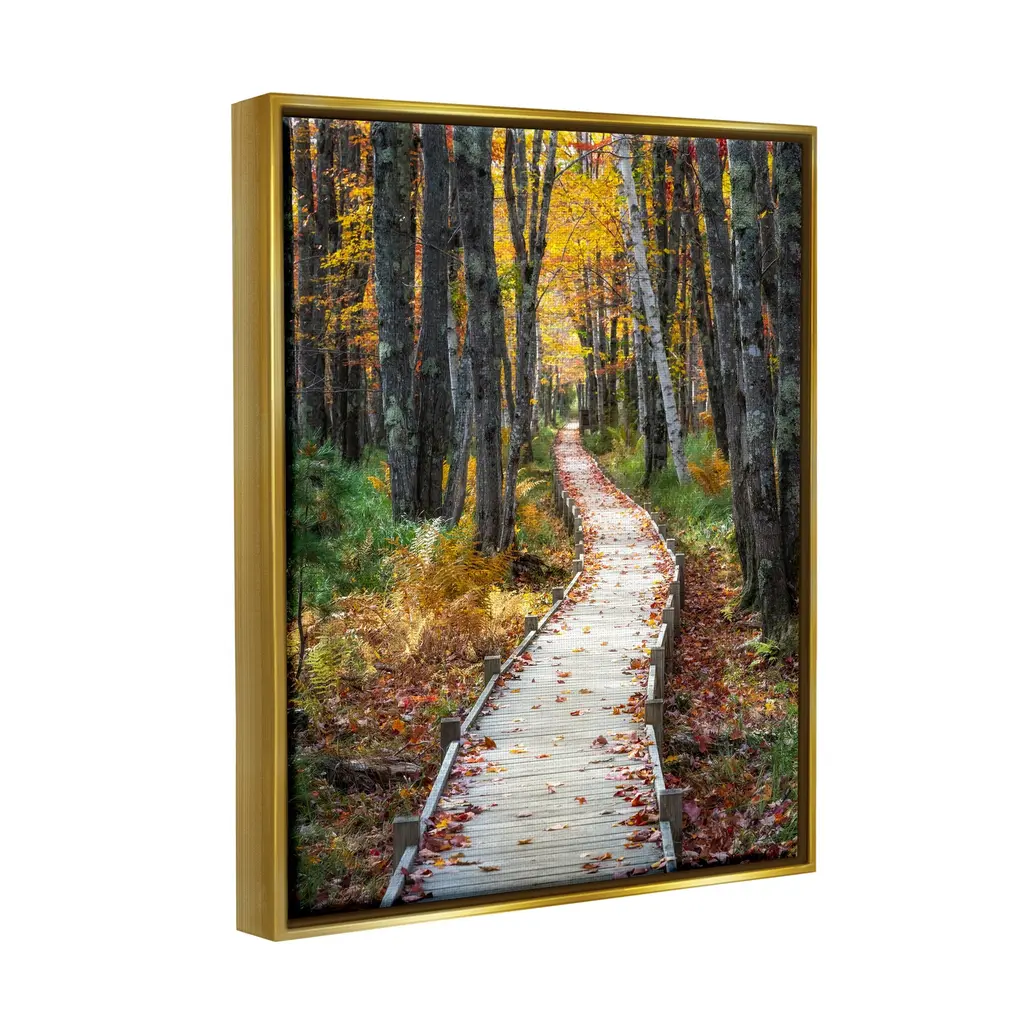 Elevate your home or office to the next level with Stupell Framed Floating Canvas Wall Art. Our premium hand-stretched canvas is mounted securely into a sturdy lightweight frame. The museum-style gap between the wrapped canvas and the box frame gives the illusion of floating artwork. Stupell Wall Art is made in the USA.Features: Dimensions: 17 x 1.7 x 21 Frame, 16 x 1.5 x 20 Canvas ArtFloating Frame Sizes Include Standard: 17 x 1.7 x 21 Oversized: 25 x 1.7 x 31Wall Art is Ready to Hang - No Installation or Hardware Needed. For Easy Set Up Lean or Layer Artwork on Shelf or Against Wall.Our elevated 1.7" Thick Floating Frame is the perfect complement to our canvas style Wall Art. We use only the highest quality inks in house with industry leading printing solutions. Canvas is hand stretched over a durable wood foundation and then mounted securly into a Modern Box Frame. Made in the USA.Artwork Relates To: Autumn, Path, Nature, Outdoors, Trail, Scenery, Boardwalk, BridgeDesign by Danny Head