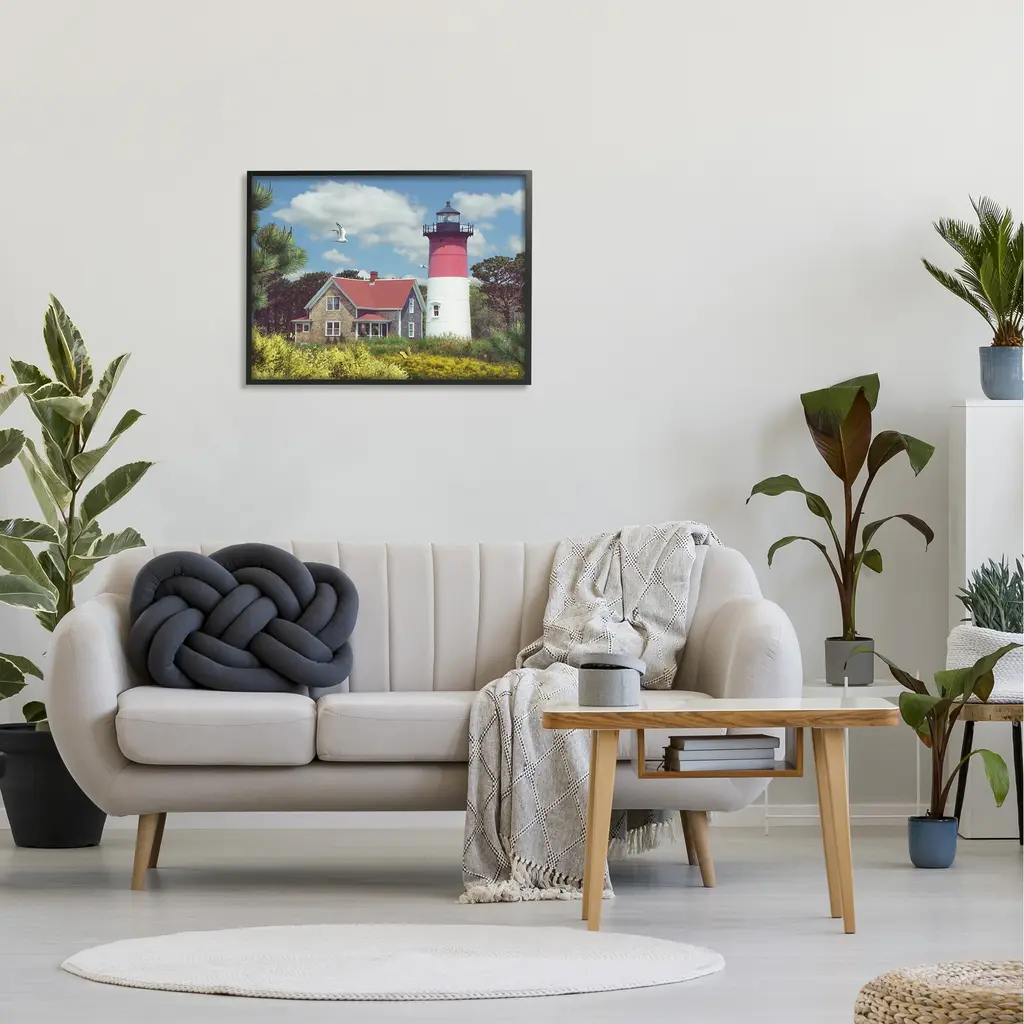 Stupell Nauset Lighthouse Forest And Fields Scene With Seagull Framed Art, 11x14, Proudly Made In Usa - 24 X 30