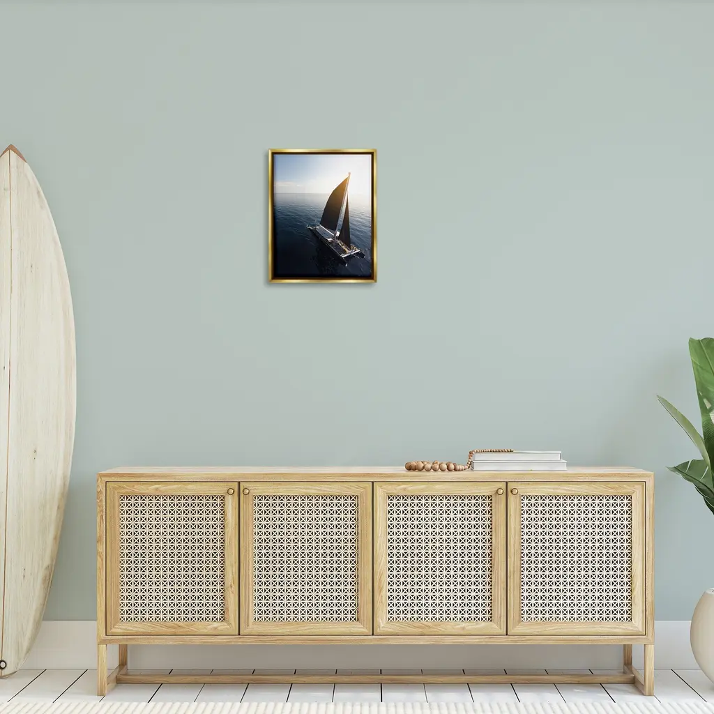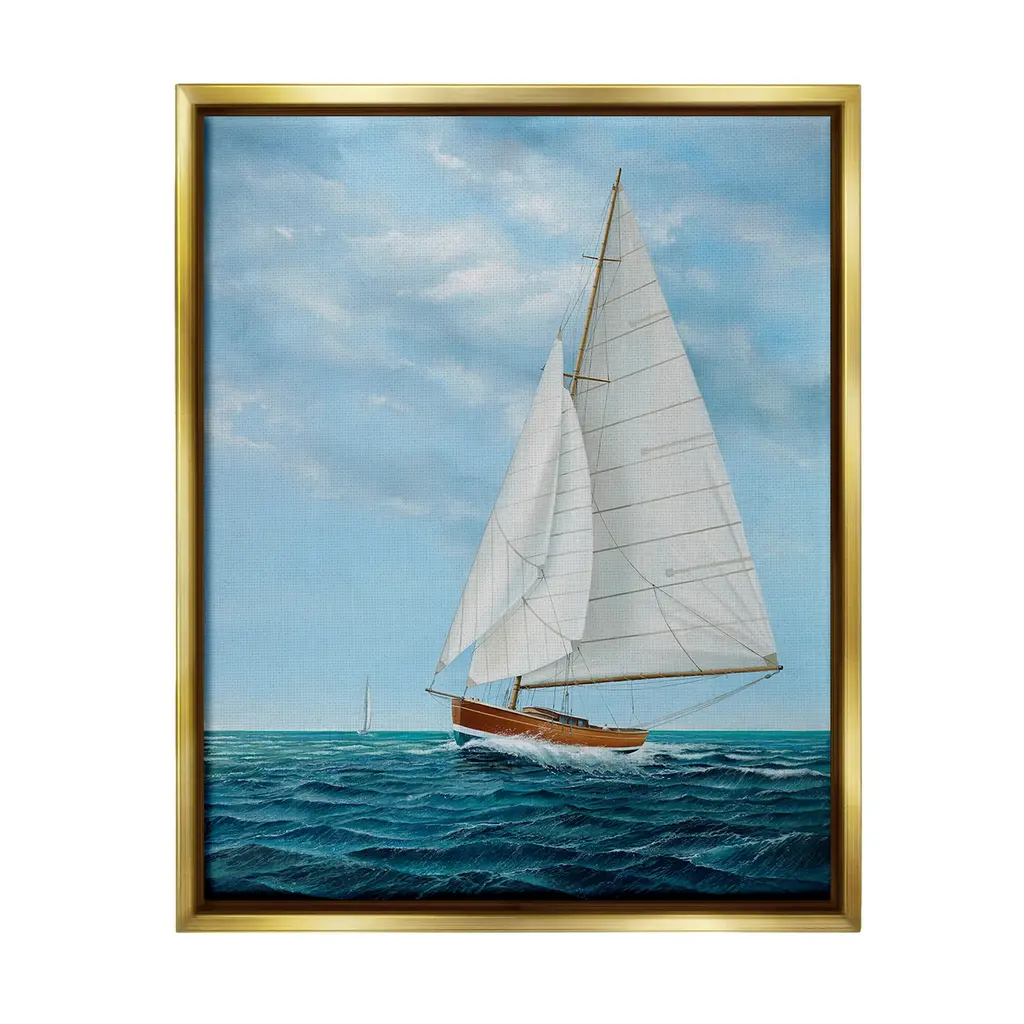 Elevate your home or office to the next level with Stupell Framed Floating Canvas Wall Art. Our premium hand-stretched canvas is mounted securely into a sturdy lightweight frame. The museum-style gap between the wrapped canvas and the box frame gives the illusion of floating artwork. Stupell Wall Art is made in the USA.Features: Dimensions: 17 x 1.7 x 21 Frame, 16 x 1.5 x 20 Canvas ArtFloating Frame Canvas Products are available in sizes 17"x21" and 25"x31". All Floating Frame Canvas Products have a 1.7" Depth.Wall Art is Ready to Hang with Hardware Free Hanging. No Installation required. For Easy Set Up Lean or Layer Artwork on Shelf or Against Wall. Artwork is Permently Fixed into the Frame.Our elevated 1.7" Thick Floating Frame is the perfect complement to our canvas style Wall Art. We use only the highest quality inks in house with industry leading printing solutions. Canvas is hand stretched over a durable wood foundation and then mounted securly into a Modern Box Frame. Made in the USA.Artwork Relates To: Boat, Sailboat, Transportation, Vehicle, Yacht, Horizon, Watercraft, PhotographyDesign by Lil' Rue
