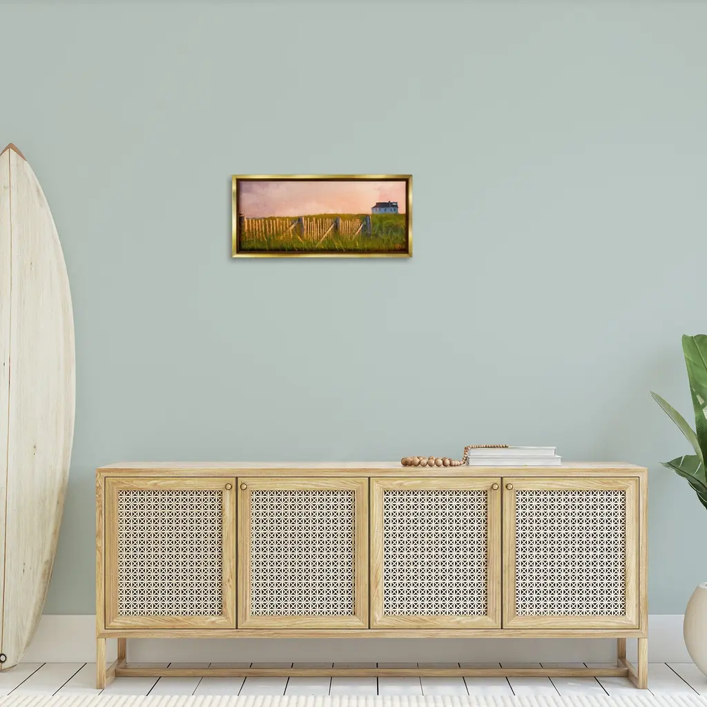 Elevate your home or office to the next level with Stupell Framed Floating Canvas Wall Art. Our premium hand-stretched canvas is mounted securely into a sturdy lightweight frame. The museum-style gap between the wrapped canvas and the box frame gives the illusion of floating artwork. Stupell Wall Art is made in the USA.Features: Dimensions: 25 x 1.7 x 11 Frame, 24 x 1.5 x 10 Canvas ArtFloating Frame Canvas Products are available in sizes 25"x11" and 31"x14". All Floating Frame Canvas Products have a 1.7" Depth.Wall Art is Ready to Hang with Hardware Free Hanging. No Installation required. For Easy Set Up Lean or Layer Artwork on Shelf or Against Wall. Artwork is Permently Fixed into the Frame.Our elevated 1.7" Thick Floating Frame is the perfect complement to our canvas style Wall Art. We use only the highest quality inks in house with industry leading printing solutions. Canvas is hand stretched over a durable wood foundation and then mounted securly into a Modern Box Frame. Made in the USA.Artwork Relates To: Grass, Plant, Nature, Painting, Field, Grassland, Fence, Cottage, Meadow, Nautical, BeachDesign by GraffiTee Studios