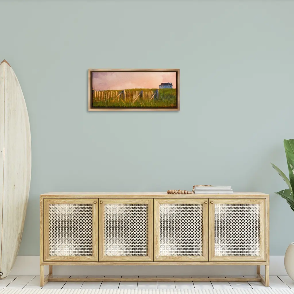 Elevate your home or office to the next level with Stupell Framed Floating Canvas Wall Art. Our premium hand-stretched canvas is mounted securely into a sturdy lightweight frame. The museum-style gap between the wrapped canvas and the box frame gives the illusion of floating artwork. Stupell Wall Art is made in the USA.Features: Dimensions: 25 x 1.7 x 11 Frame, 24 x 1.5 x 10 Canvas ArtFloating Frame Canvas Products are available in sizes 25"x11" and 31"x14". All Floating Frame Canvas Products have a 1.7" Depth.Wall Art is Ready to Hang with Hardware Free Hanging. No Installation required. For Easy Set Up Lean or Layer Artwork on Shelf or Against Wall. Artwork is Permently Fixed into the Frame.Our elevated 1.7" Thick Floating Frame is the perfect complement to our canvas style Wall Art. We use only the highest quality inks in house with industry leading printing solutions. Canvas is hand stretched over a durable wood foundation and then mounted securly into a Modern Box Frame. Made in the USA.Artwork Relates To: Grass, Plant, Nature, Painting, Field, Grassland, Fence, Cottage, Meadow, Nautical, BeachDesign by GraffiTee Studios