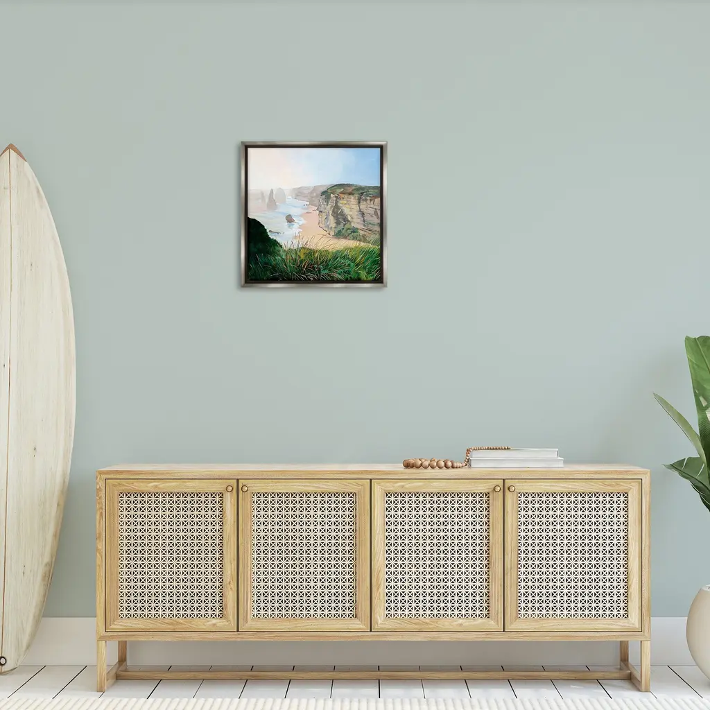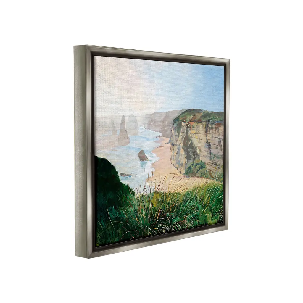 Elevate your home or office to the next level with Stupell Framed Floating Canvas Wall Art. Our premium hand-stretched canvas is mounted securely into a sturdy lightweight frame. The museum-style gap between the wrapped canvas and the box frame gives the illusion of floating artwork. Stupell Wall Art is made in the USA.Features: Dimensions: 18 x 1.7 x 18 Frame, 17 x 1.5 x 17 Canvas ArtFloating Frame Canvas Products are available in sizes 18"x18" and 25"x25". All Floating Frame Canvas Products have a 1.7" Depth.Wall Art is Ready to Hang with Hardware Free Hanging. No Installation required. For Easy Set Up Lean or Layer Artwork on Shelf or Against Wall. Artwork is Permently Fixed into the Frame.Our elevated 1.7" Thick Floating Frame is the perfect complement to our canvas style Wall Art. We use only the highest quality inks in house with industry leading printing solutions. Canvas is hand stretched over a durable wood foundation and then mounted securly into a Modern Box Frame. Made in the USA.Artwork Relates To: Nature, Scenery, Sea, Cliff, Landscape, Shoreline, Coast, Beach, Cove, BayDesign by Meredith Howse