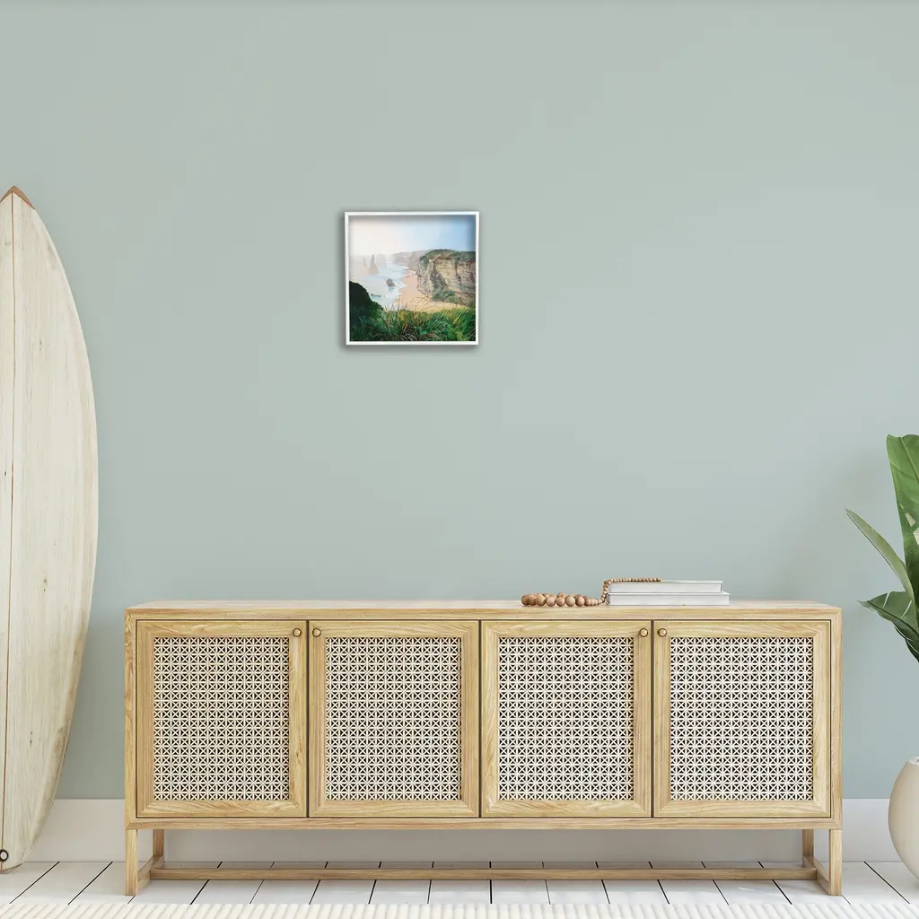 Add dimension to any room with our textured Framed Giclee Artwork. Our framed artwork is securely mounted into a 1.5-inch thick wood grain frame and ready to hang. Frames are available in three alluring styles: black, gray farmhouse and white. In addition, you should check out our oversized options if you want a statement piece. Stupell Wall Art is made in the USA.Features: Dimensions: 12 x 1.5 x 12 FramedFramed Giclee Product Sizes Include 12"x12", 17"x17", and 24"x24". Framed Giclee Products have a 1.5" Depth. Wall Art is Ready to Hang with Hardware Free Hanging. No installation required. For Easy Set Up Lean or Layer Artwork on Shelf or Against Wall.Our giclée prints are carefully mounted on a durable MDF backing, and then perfectly finished in a 1.5 inch thick woodgrain frame. Mounted frame colors include black, gray farmhouse and white. Made In USA.Artwork Relates To: Nature, Scenery, Sea, Cliff, Landscape, Shoreline, Coast, Beach, Cove, BayDesign by Meredith Howse