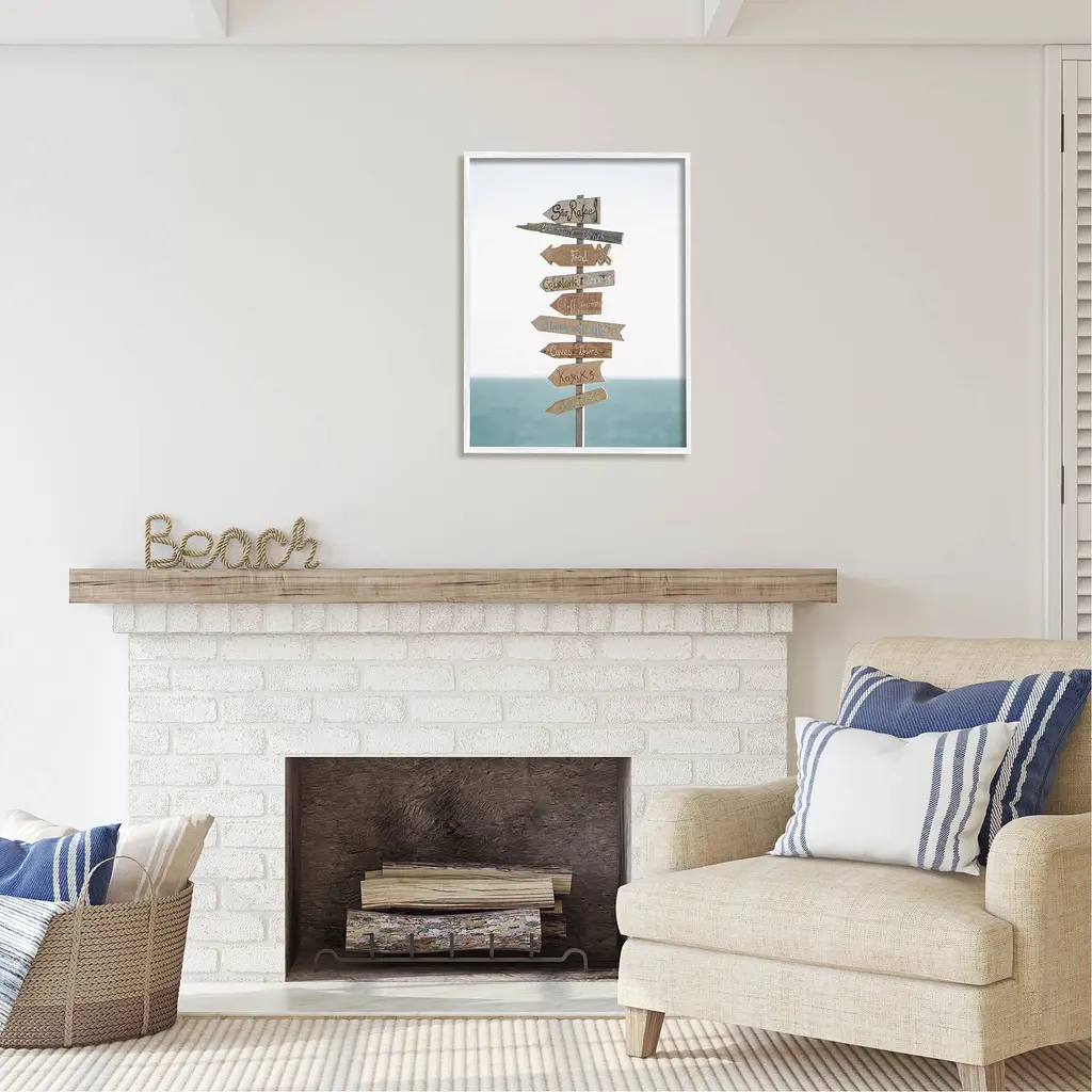 Stupell Nautical Beach Direction Sign Framed Giclee Art By Krista Broadway - 11 X 14 - White