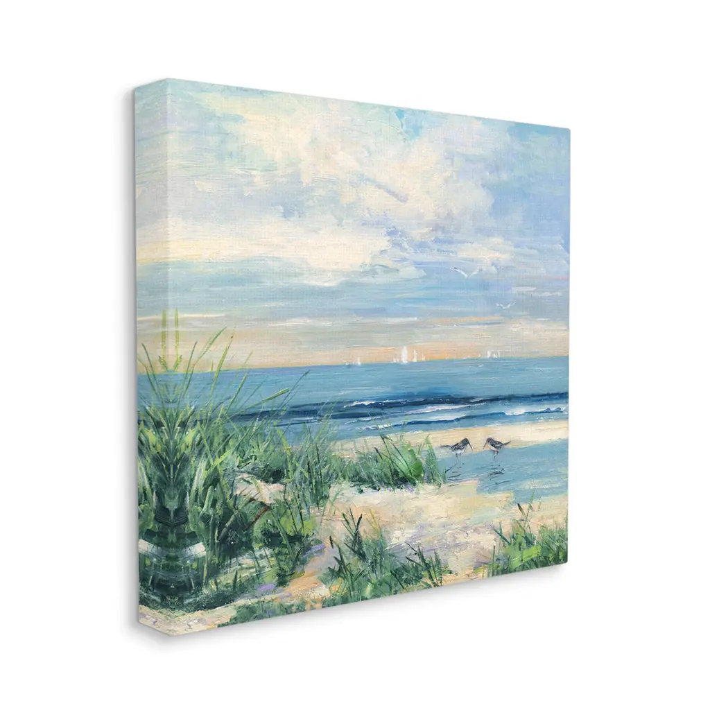 We create our stretched canvas to the highest standards. Using only the highest quality inks and canvas on Mimaki printers, we hand-cut and stretch each piece over a 1.5-inch thick wooden frame for hanging. As a result, the art comes ready to hang on the sturdy ledge with no installation required. Stupell Wall Art is made in the USA.Features: Dimensions: 17 x 1.5 x 17 InchesStretched Canvas Sizes Include Standard: 17 x 1.5 x 17 Large: 24 x 1.5 x 24 X-Large: 30 x 1.5 x 30 Oversized: 36 x 1.5 x 36Wall Art is Ready to Hang - No Installation or Hardware Needed. For Easy Set Up Lean or Layer Artwork on Shelf or Against Wall.Our stretched canvas is created with the highest standards. We use only the highest quality inks and canvas on our in house Mimaki printers, and then hand cut and stretch each piece over a 1.5 inch thick wooden frame for hanging. Made In USA.Artwork Relates To: Painting, Animal, Bird, Beach, Coast, Nature, Sea, Shoreline, Water, Sandpiper, NauticalDesign by Sally Swatland