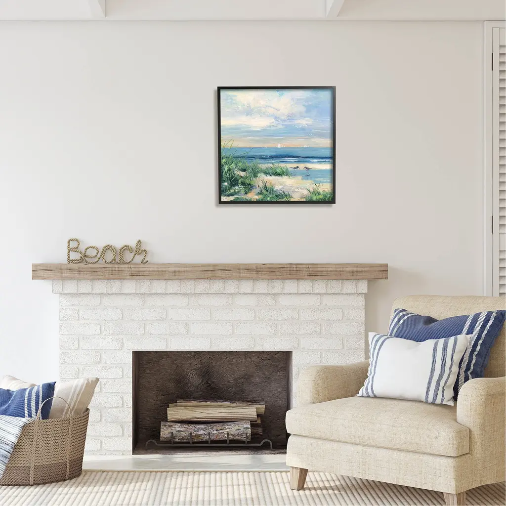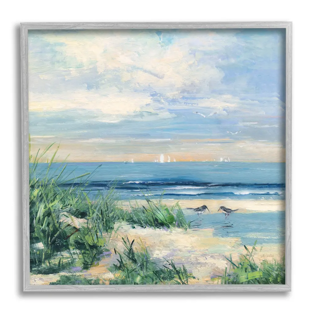 Add dimension to any room with our textured Framed Giclee Artwork. Our framed artwork is securely mounted into a 1.5-inch thick wood grain frame and ready to hang. Frames are available in three alluring styles: black, gray farmhouse and white. In addition, you should check out our oversized options if you want a statement piece. Stupell Wall Art is made in the USA.Features: Dimensions: 12 x 1.5 x 12 FramedFramed Giclee Sizes Include Standard: 12 x 1.5 x 12 Large: 17 x 1.5 x 17 Oversized: 24 x 1.5 x 24Wall Art is Ready to Hang - No Installation or Hardware Needed. For Easy Set Up Lean or Layer Artwork on Shelf or Against Wall.Our giclée prints are carefully mounted on a durable MDF backing, and then perfectly finished in a 1.5 inch thick woodgrain frame. Mounted frame colors include black, gray farmhouse and white. Made In USA.Artwork Relates To: Painting, Animal, Bird, Beach, Coast, Nature, Sea, Shoreline, Water, Sandpiper, NauticalDesign by Sally Swatland