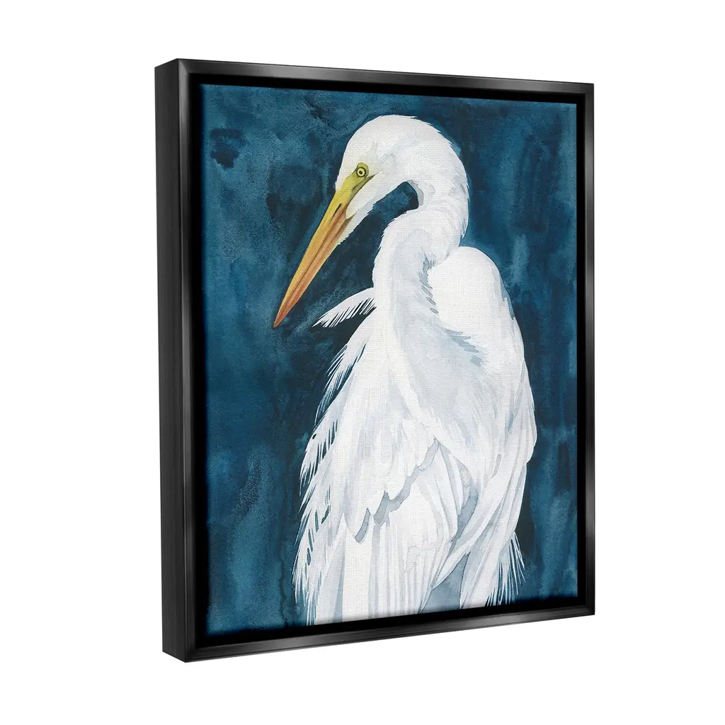 Elevate your home or office to the next level with Stupell Framed Floating Canvas Wall Art. Our premium hand-stretched canvas is mounted securely into a sturdy lightweight frame. The museum-style gap between the wrapped canvas and the box frame gives the illusion of floating artwork. Stupell Wall Art is made in the USA.Features: Dimensions: 17 x 1.7 x 21 Frame, 16 x 1.5 x 20 Canvas ArtFloating Frame Canvas Products are available in sizes 17"x21" and 25"x31". All Floating Frame Canvas Products have a 1.7" Depth.Wall Art is Ready to Hang with Hardware Free Hanging. No Installation required. For Easy Set Up Lean or Layer Artwork on Shelf or Against Wall. Artwork is Permently Fixed into the Frame.Our elevated 1.7" Thick Floating Frame is the perfect complement to our canvas style Wall Art. We use only the highest quality inks in house with industry leading printing solutions. Canvas is hand stretched over a durable wood foundation and then mounted securly into a Modern Box Frame. Made in the USA.Artwork Relates To: Animal, Bird, Crane Bird, Heron, Egret, Portrait, NauticalDesign by Grace Popp