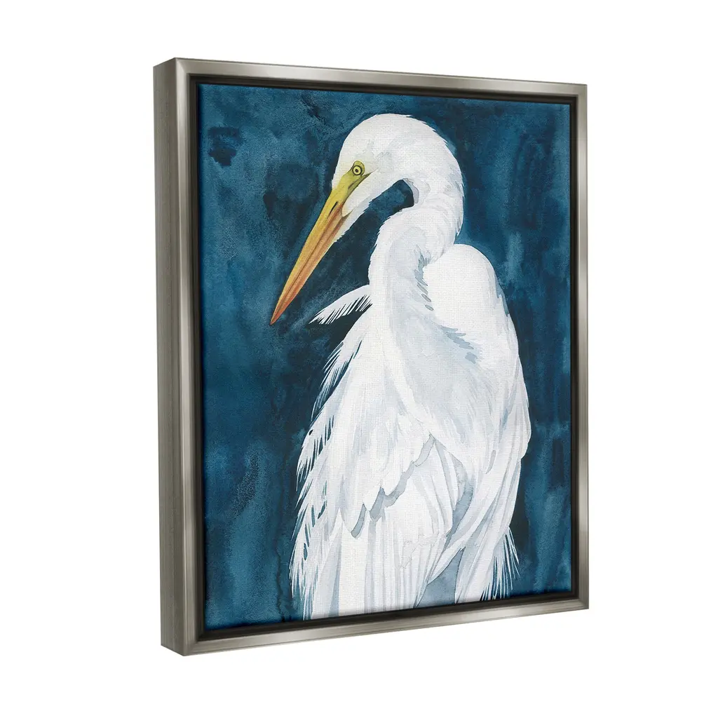 Elevate your home or office to the next level with Stupell Framed Floating Canvas Wall Art. Our premium hand-stretched canvas is mounted securely into a sturdy lightweight frame. The museum-style gap between the wrapped canvas and the box frame gives the illusion of floating artwork. Stupell Wall Art is made in the USA.Features: Dimensions: 17 x 1.7 x 21 Frame, 16 x 1.5 x 20 Canvas ArtFloating Frame Canvas Products are available in sizes 17"x21" and 25"x31". All Floating Frame Canvas Products have a 1.7" Depth.Wall Art is Ready to Hang with Hardware Free Hanging. No Installation required. For Easy Set Up Lean or Layer Artwork on Shelf or Against Wall. Artwork is Permently Fixed into the Frame.Our elevated 1.7" Thick Floating Frame is the perfect complement to our canvas style Wall Art. We use only the highest quality inks in house with industry leading printing solutions. Canvas is hand stretched over a durable wood foundation and then mounted securly into a Modern Box Frame. Made in the USA.Artwork Relates To: Animal, Bird, Crane Bird, Heron, Egret, Portrait, NauticalDesign by Grace Popp