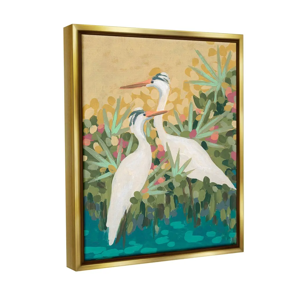 Elevate your home or office to the next level with Stupell Framed Floating Canvas Wall Art. Our premium hand-stretched canvas is mounted securely into a sturdy lightweight frame. The museum-style gap between the wrapped canvas and the box frame gives the illusion of floating artwork. Stupell Wall Art is made in the USA.Features: Dimensions: 17 x 1.7 x 21 Frame, 16 x 1.5 x 20 Canvas ArtFloating Frame Canvas Products are available in sizes 17"x21" and 25"x31". All Floating Frame Canvas Products have a 1.7" Depth.Wall Art is Ready to Hang with Hardware Free Hanging. No Installation required. For Easy Set Up Lean or Layer Artwork on Shelf or Against Wall. Artwork is Permently Fixed into the Frame.Our elevated 1.7" Thick Floating Frame is the perfect complement to our canvas style Wall Art. We use only the highest quality inks in house with industry leading printing solutions. Canvas is hand stretched over a durable wood foundation and then mounted securly into a Modern Box Frame. Made in the USA.Artwork Relates To: Animal, Bird, Painting, Crane Bird, Egret, Heron, Abstract, Modern, Pond, StreamDesign by June Erica Vess