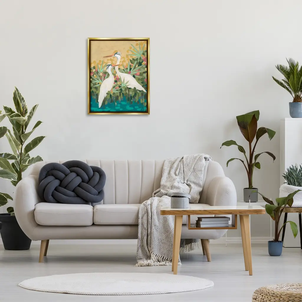 Elevate your home or office to the next level with Stupell Framed Floating Canvas Wall Art. Our premium hand-stretched canvas is mounted securely into a sturdy lightweight frame. The museum-style gap between the wrapped canvas and the box frame gives the illusion of floating artwork. Stupell Wall Art is made in the USA.Features: Dimensions: 17 x 1.7 x 21 Frame, 16 x 1.5 x 20 Canvas ArtFloating Frame Canvas Products are available in sizes 17"x21" and 25"x31". All Floating Frame Canvas Products have a 1.7" Depth.Wall Art is Ready to Hang with Hardware Free Hanging. No Installation required. For Easy Set Up Lean or Layer Artwork on Shelf or Against Wall. Artwork is Permently Fixed into the Frame.Our elevated 1.7" Thick Floating Frame is the perfect complement to our canvas style Wall Art. We use only the highest quality inks in house with industry leading printing solutions. Canvas is hand stretched over a durable wood foundation and then mounted securly into a Modern Box Frame. Made in the USA.Artwork Relates To: Animal, Bird, Painting, Crane Bird, Egret, Heron, Abstract, Modern, Pond, StreamDesign by June Erica Vess