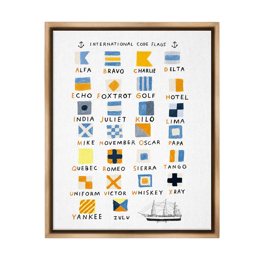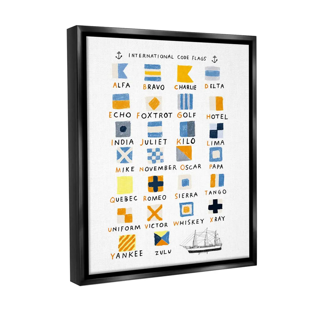 Elevate your home or office to the next level with Stupell Framed Floating Canvas Wall Art. Our premium hand-stretched canvas is mounted securely into a sturdy lightweight frame. The museum-style gap between the wrapped canvas and the box frame gives the illusion of floating artwork. Stupell Wall Art is made in the USA.Features: Dimensions: 17 x 1.7 x 21 Frame, 16 x 1.5 x 20 Canvas ArtFloating Frame Canvas Products are available in sizes 17"x21" and 25"x31". All Floating Frame Canvas Products have a 1.7" Depth.Wall Art is Ready to Hang with Hardware Free Hanging. No Installation required. For Easy Set Up Lean or Layer Artwork on Shelf or Against Wall. Artwork is Permently Fixed into the Frame.Our elevated 1.7" Thick Floating Frame is the perfect complement to our canvas style Wall Art. We use only the highest quality inks in house with industry leading printing solutions. Canvas is hand stretched over a durable wood foundation and then mounted securly into a Modern Box Frame. Made in the USA.Artwork Relates To: Boat, Sailboat, Ship, Flag, Symbol, Educational, Nautical, MaritimeDesign by Hanna Melin