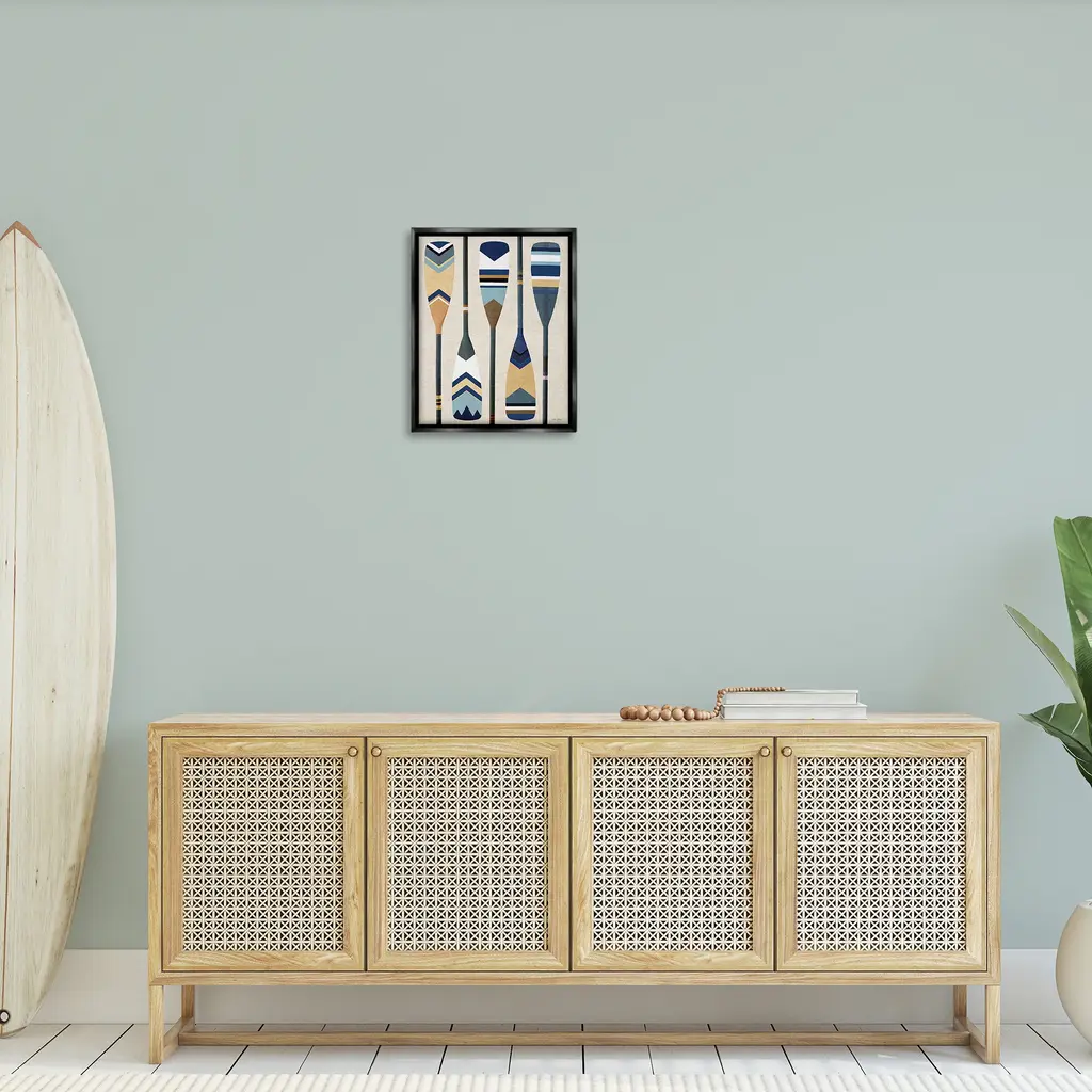 Elevate your home or office to the next level with Stupell Framed Floating Canvas Wall Art. Our premium hand-stretched canvas is mounted securely into a sturdy lightweight frame. The museum-style gap between the wrapped canvas and the box frame gives the illusion of floating artwork. Stupell Wall Art is made in the USA.Features: Dimensions: 17 x 1.7 x 21 Frame, 16 x 1.5 x 20 Canvas ArtFloating Frame Canvas Products are available in sizes 17"x21" and 25"x31". All Floating Frame Canvas Products have a 1.7" Depth.Wall Art is Ready to Hang with Hardware Free Hanging. No Installation required. For Easy Set Up Lean or Layer Artwork on Shelf or Against Wall. Artwork is Permently Fixed into the Frame.Our elevated 1.7" Thick Floating Frame is the perfect complement to our canvas style Wall Art. We use only the highest quality inks in house with industry leading printing solutions. Canvas is hand stretched over a durable wood foundation and then mounted securly into a Modern Box Frame. Made in the USA.Artwork Relates To: Oars, Paddle, Lake House, Rustic, Stripes, Pattern, Boating, Boat, NauticalDesign by Amber Sterling