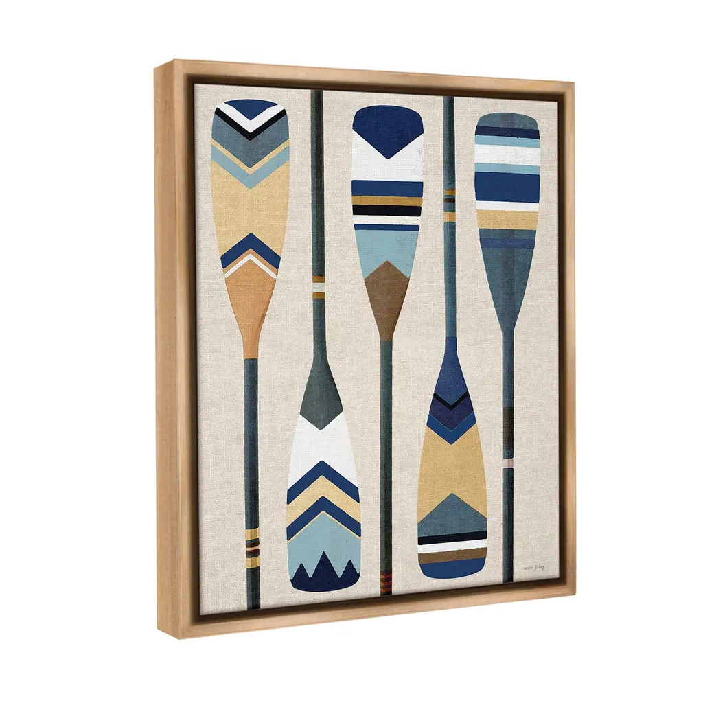Elevate your home or office to the next level with Stupell Framed Floating Canvas Wall Art. Our premium hand-stretched canvas is mounted securely into a sturdy lightweight frame. The museum-style gap between the wrapped canvas and the box frame gives the illusion of floating artwork. Stupell Wall Art is made in the USA.Features: Dimensions: 17 x 1.7 x 21 Frame, 16 x 1.5 x 20 Canvas ArtFloating Frame Canvas Products are available in sizes 17"x21" and 25"x31". All Floating Frame Canvas Products have a 1.7" Depth.Wall Art is Ready to Hang with Hardware Free Hanging. No Installation required. For Easy Set Up Lean or Layer Artwork on Shelf or Against Wall. Artwork is Permently Fixed into the Frame.Our elevated 1.7" Thick Floating Frame is the perfect complement to our canvas style Wall Art. We use only the highest quality inks in house with industry leading printing solutions. Canvas is hand stretched over a durable wood foundation and then mounted securly into a Modern Box Frame. Made in the USA.Artwork Relates To: Oars, Paddle, Lake House, Rustic, Stripes, Pattern, Boating, Boat, NauticalDesign by Amber Sterling