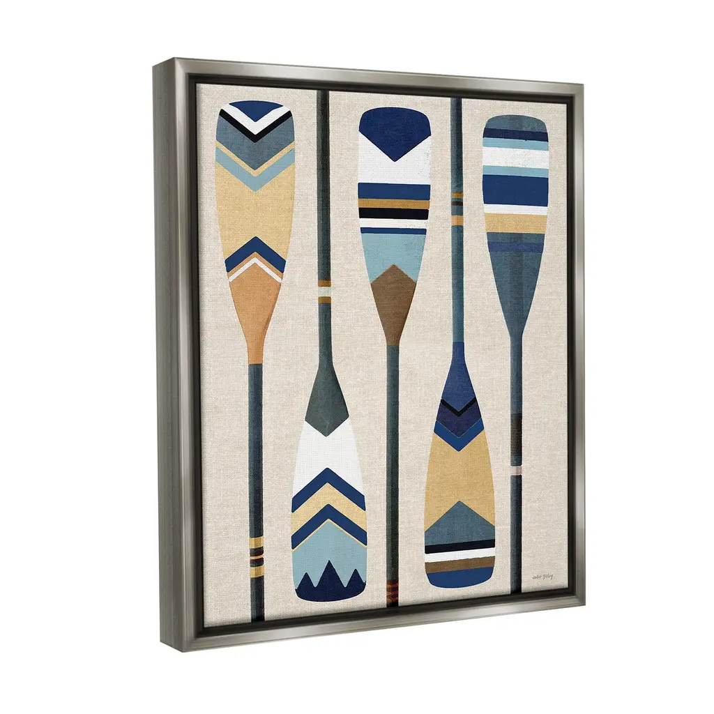 Elevate your home or office to the next level with Stupell Framed Floating Canvas Wall Art. Our premium hand-stretched canvas is mounted securely into a sturdy lightweight frame. The museum-style gap between the wrapped canvas and the box frame gives the illusion of floating artwork. Stupell Wall Art is made in the USA.Features: Dimensions: 17 x 1.7 x 21 Frame, 16 x 1.5 x 20 Canvas ArtFloating Frame Canvas Products are available in sizes 17"x21" and 25"x31". All Floating Frame Canvas Products have a 1.7" Depth.Wall Art is Ready to Hang with Hardware Free Hanging. No Installation required. For Easy Set Up Lean or Layer Artwork on Shelf or Against Wall. Artwork is Permently Fixed into the Frame.Our elevated 1.7" Thick Floating Frame is the perfect complement to our canvas style Wall Art. We use only the highest quality inks in house with industry leading printing solutions. Canvas is hand stretched over a durable wood foundation and then mounted securly into a Modern Box Frame. Made in the USA.Artwork Relates To: Oars, Paddle, Lake House, Rustic, Stripes, Pattern, Boating, Boat, NauticalDesign by Amber Sterling