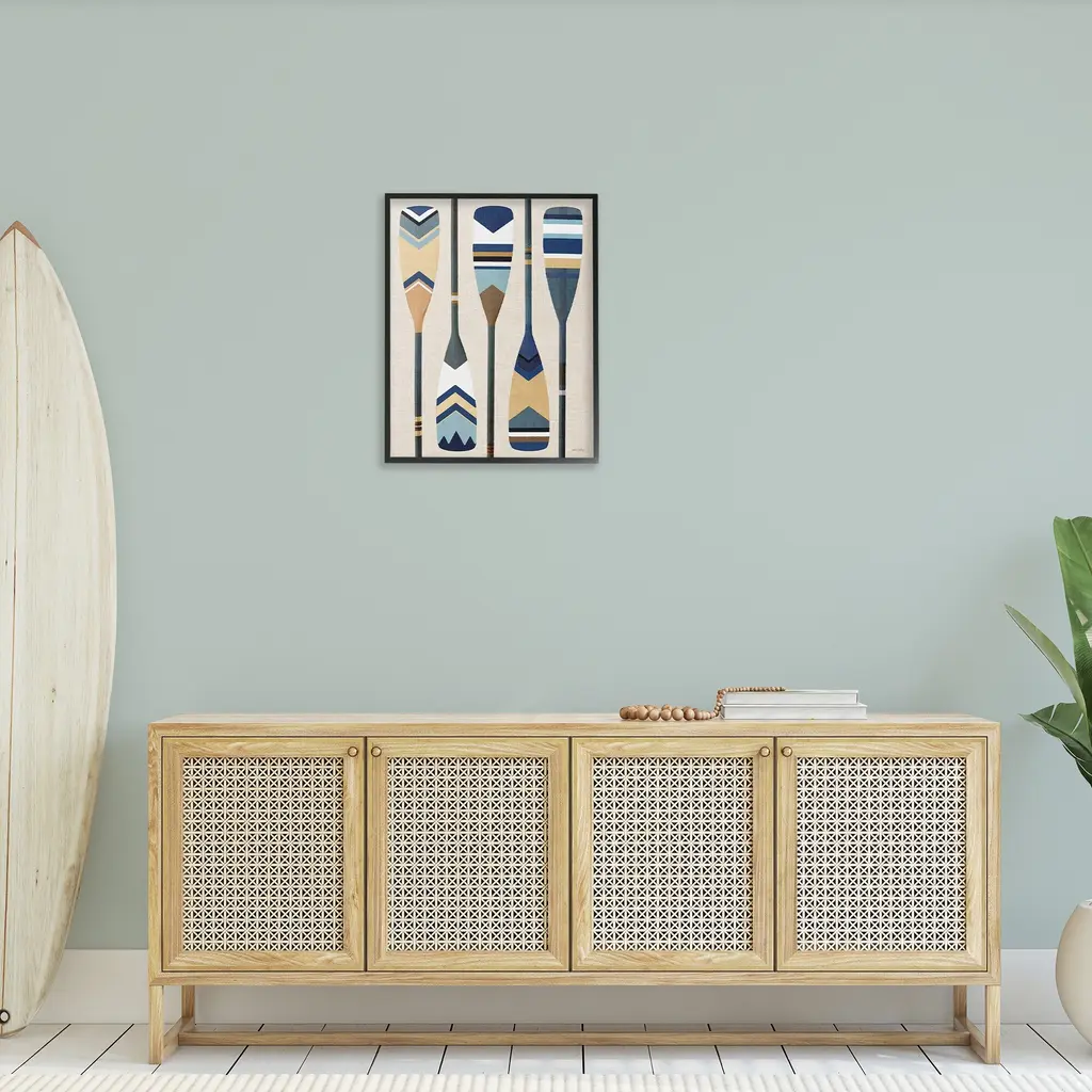 Add dimension to any room with our textured Framed Giclee Artwork. Our framed artwork is securely mounted into a 1.5-inch thick wood grain frame and ready to hang. Frames are available in three alluring styles: black, gray farmhouse and white. In addition, you should check out our oversized options if you want a statement piece. Stupell Wall Art is made in the USA.Features: Dimensions: 11 x 1.5 x 14 FramedFramed Giclee Products are available in the sizes 11"x14", 16"x20" or 24"x30". All Framed Giclee Products have a 1.5" Depth. Wall Art is Ready to Hang with Hardware Free Hanging. No installation required. For Easy Set Up Lean or Layer Artwork on Shelf or Against Wall.Our giclée prints are carefully mounted on a durable MDF backing, and then perfectly finished in a 1.5 inch thick woodgrain frame. Mounted frame colors include black, gray farmhouse and white. Made In USA.Artwork Relates To: Oars, Paddle, Lake House, Rustic, Stripes, Pattern, Boating, Boat, NauticalDesign by Amber Sterling