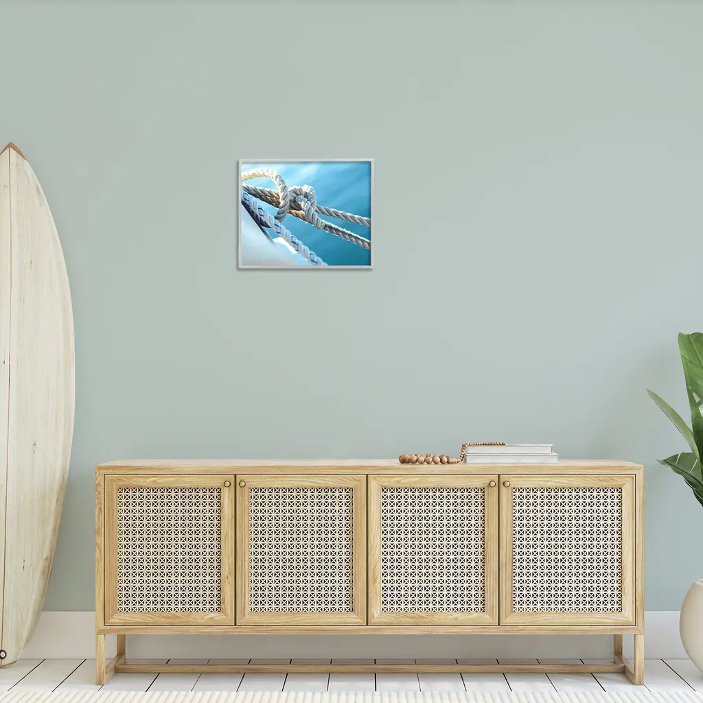 Add dimension to any room with our textured Framed Giclee Artwork. Our framed artwork is securely mounted into a 1.5-inch thick wood grain frame and ready to hang. Frames are available in three alluring styles: black, gray farmhouse and white. In addition, you should check out our oversized options if you want a statement piece. Stupell Wall Art is made in the USA.Features: Dimensions: 14 x 1.5 x 11 FramedFramed Giclee Products are available in the sizes 14"x11", 20"x16" or 30"x24". All Framed Giclee Products have a 1.5" Depth. Wall Art is Ready to Hang with Hardware Free Hanging. No installation required. For Easy Set Up Lean or Layer Artwork on Shelf or Against Wall.Our giclée prints are carefully mounted on a durable MDF backing, and then perfectly finished in a 1.5 inch thick woodgrain frame. Mounted frame colors include black, gray farmhouse and white. Made In USA.Artwork Relates To: Rope, Knot, Boat, Sailboat, Boat, Boating, Nautical, Maritime, PhotographyDesign by Lil' Rue