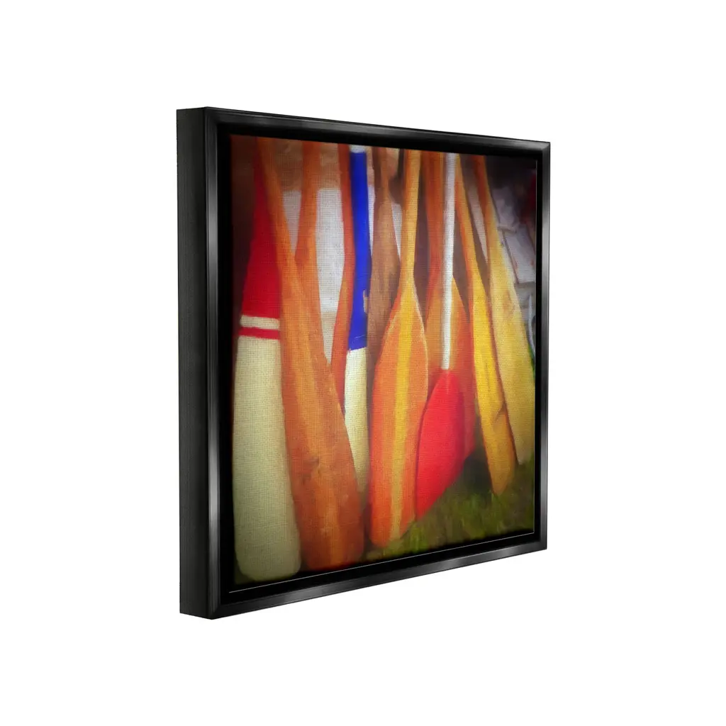 Elevate your home or office to the next level with Stupell Framed Floating Canvas Wall Art. Our premium hand-stretched canvas is mounted securely into a sturdy lightweight frame. The museum-style gap between the wrapped canvas and the box frame gives the illusion of floating artwork. Stupell Wall Art is made in the USA.Features: Dimensions: 18 x 1.7 x 18 Frame, 17 x 1.5 x 17 Canvas ArtFloating Frame Canvas Products are available in sizes 18"x18" and 25"x25". All Floating Frame Canvas Products have a 1.7" Depth.Wall Art is Ready to Hang with Hardware Free Hanging. No Installation required. For Easy Set Up Lean or Layer Artwork on Shelf or Against Wall. Artwork is Permently Fixed into the Frame.Our elevated 1.7" Thick Floating Frame is the perfect complement to our canvas style Wall Art. We use only the highest quality inks in house with industry leading printing solutions. Canvas is hand stretched over a durable wood foundation and then mounted securly into a Modern Box Frame. Made in the USA.Artwork Relates To: Oars, Paddle, Nautical, Boating, Boat, Lake, Beach, MaritimeDesign by GraffiTee Studios