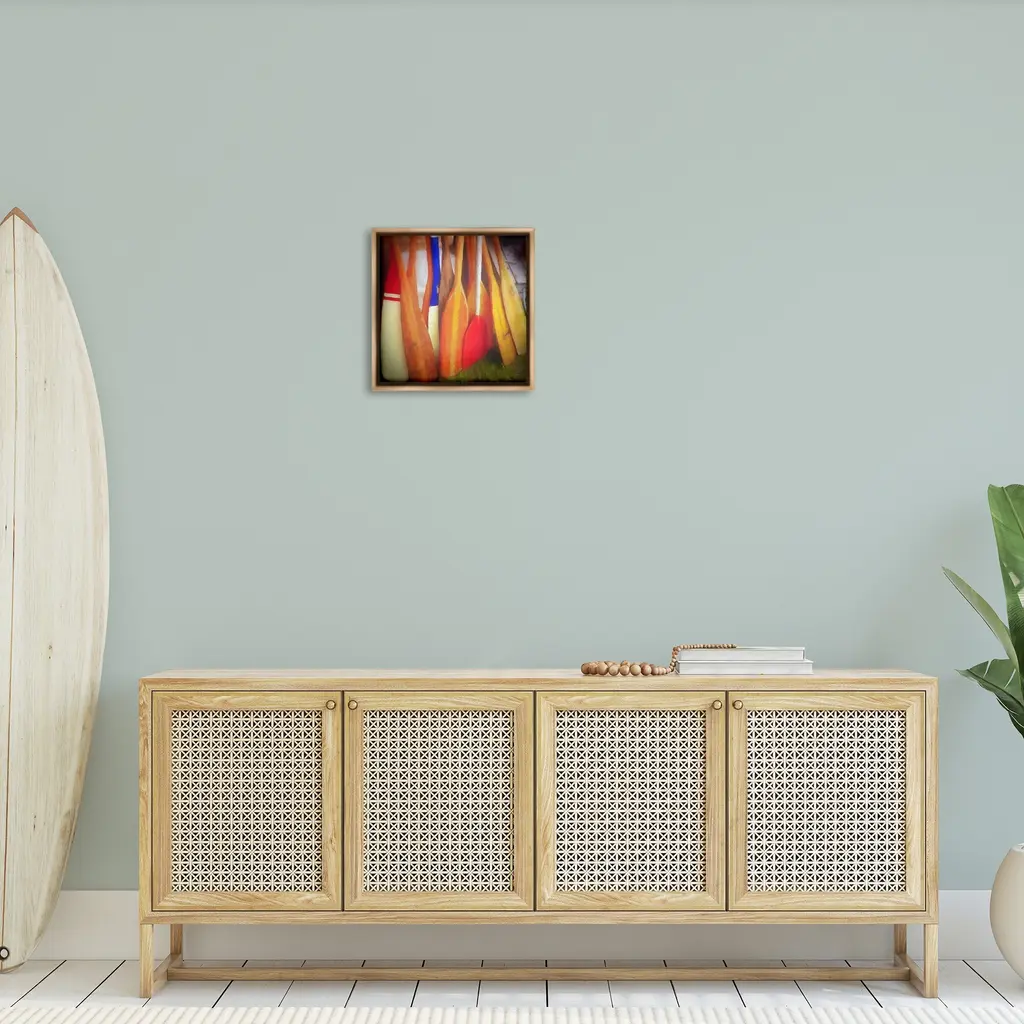Elevate your home or office to the next level with Stupell Framed Floating Canvas Wall Art. Our premium hand-stretched canvas is mounted securely into a sturdy lightweight frame. The museum-style gap between the wrapped canvas and the box frame gives the illusion of floating artwork. Stupell Wall Art is made in the USA.Features: Dimensions: 18 x 1.7 x 18 Frame, 17 x 1.5 x 17 Canvas ArtFloating Frame Canvas Products are available in sizes 18"x18" and 25"x25". All Floating Frame Canvas Products have a 1.7" Depth.Wall Art is Ready to Hang with Hardware Free Hanging. No Installation required. For Easy Set Up Lean or Layer Artwork on Shelf or Against Wall. Artwork is Permently Fixed into the Frame.Our elevated 1.7" Thick Floating Frame is the perfect complement to our canvas style Wall Art. We use only the highest quality inks in house with industry leading printing solutions. Canvas is hand stretched over a durable wood foundation and then mounted securly into a Modern Box Frame. Made in the USA.Artwork Relates To: Oars, Paddle, Nautical, Boating, Boat, Lake, Beach, MaritimeDesign by GraffiTee Studios