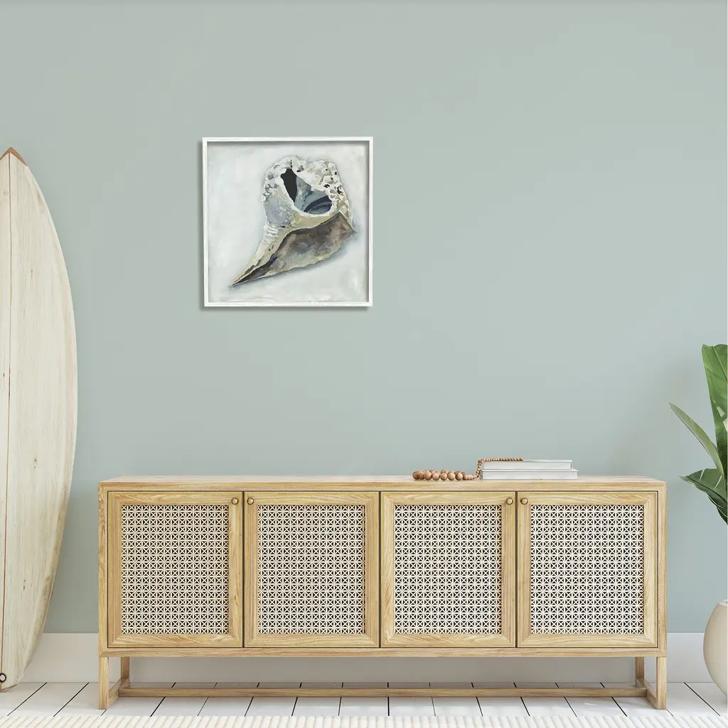 Our Framed Giclee Wall Art adds a touch of class to any space in your home or office. Frames are available in three alluring styles: black, gray farmhouse and white. Our textured artwork will add more depth and dimension to any space. Each piece is mounted with a 1.5 inch thick wood grain frame that is ready to hang! Looking for a statement piece? We have oversized artwork available.Features:Framed Giclee Sizes IncludeStandard: 12 x 1.5 x 12Large: 17 x 1.5 x 17Oversized: 24 x 1.5 x 24Wall Art is Ready to Hang - No Installation or Hardware Needed. For Easy Set Up Lean or Layer Artwork on Shelf or Against Wall.Artwork Relates To: Conch, Seashell, Sea Life, Invertebrate, Animal, Beach Life, Nautical, Aquatic, PaintingOur giclee prints are carefully mounted on a durable MDF backing, and then perfectly finished in a 1.5 inch thick woodgrain frame. Mounted frame colors include black, gray farmhouse and white. Made In USA.Design by Erica Christopher