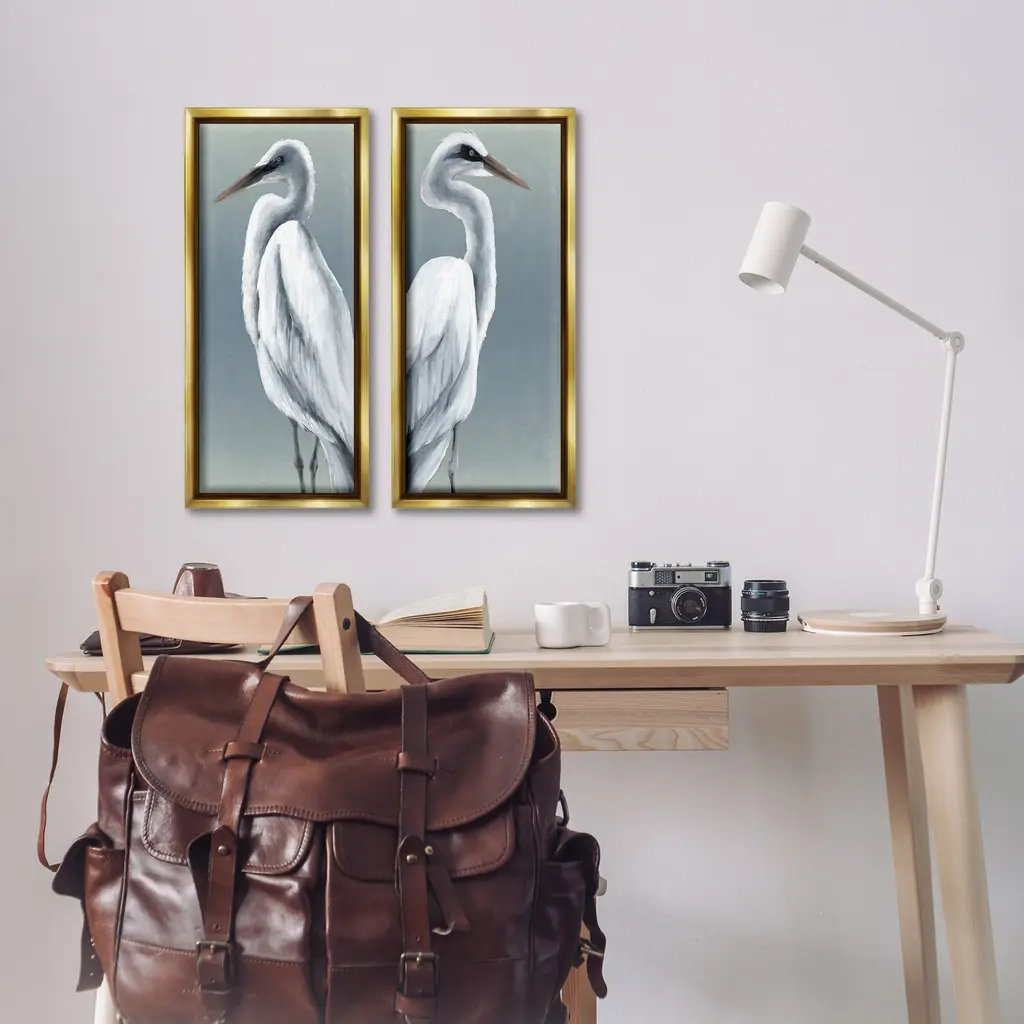 Elevate your home or office to the next level with Stupell Framed Floating Canvas Wall Art. Our premium hand-stretched canvas is mounted securely into a sturdy lightweight frame. The museum-style gap between the wrapped canvas and the box frame gives the illusion of floating artwork. Stupell Wall Art is made in the USA.Features: Dimensions: 2 Piece Set, Each Frame is 11 x 1.7 x 25Two Piece Floating Frame Canvas Products are available as 11"x25" or 14"x31" Panels. All Floating Frame Canvas Products have a 1.7" Depth.Wall Art is Ready to Hang with Hardware Free Hanging. No Installation required. For Easy Set Up Lean or Layer Artwork on Shelf or Against Wall. Artwork is Permently Fixed into the Frame.Our elevated 1.7" Thick Floating Frame is the perfect complement to our canvas style Wall Art. We use only the highest quality inks in house with industry leading printing solutions. Canvas is hand stretched over a durable wood foundation and then mounted securly into a Modern Box Frame. Made in the USA.Artwork Relates To: Animal, Bird, Waterfowl, Crane Bird, Heron, Egret, Stork, Nautical, PortraitDesign by Grace Popp