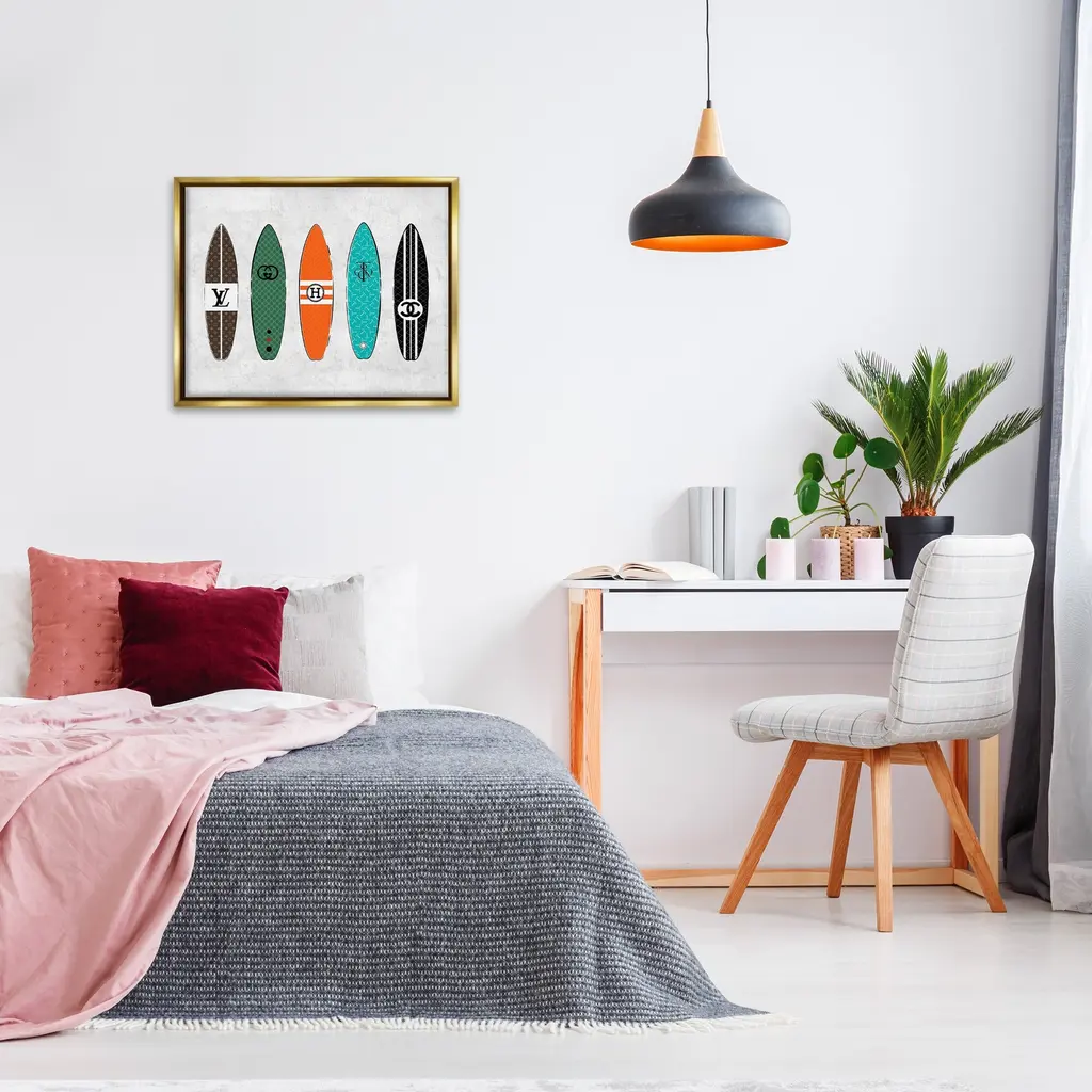 Stupell Nautical Glam Surfboards Framed Floater Canvas Wall Art Design By Martina Pavlova - 31 X 25 - Gold