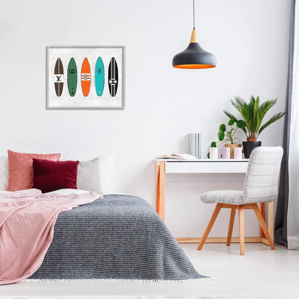 Stupell Nautical Glam Surfboards Framed Giclee Art Design By Martina Pavlova - 30 X 24 - Grey