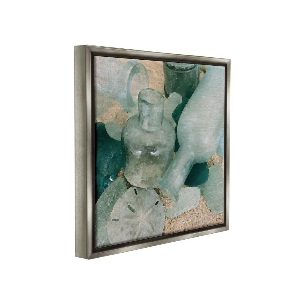 Elevate your home or office to the next level with Stupell Framed Floating Canvas Wall Art. Our premium hand-stretched canvas is mounted securely into a sturdy lightweight frame. The museum-style gap between the wrapped canvas and the box frame gives the illusion of floating artwork. Stupell Wall Art is made in the USA.Features: Dimensions: 18 x 1.7 x 18 Frame, 17 x 1.5 x 17 Canvas ArtFloating Frame Canvas Products are available in sizes 18"x18" and 25"x25". All Floating Frame Canvas Products have a 1.7" Depth.Wall Art is Ready to Hang with Hardware Free Hanging. No Installation required. For Easy Set Up Lean or Layer Artwork on Shelf or Against Wall. Artwork is Permently Fixed into the Frame.Our elevated 1.7" Thick Floating Frame is the perfect complement to our canvas style Wall Art. We use only the highest quality inks in house with industry leading printing solutions. Canvas is hand stretched over a durable wood foundation and then mounted securly into a Modern Box Frame. Made in the USA.Artwork Relates To: Beach, Ocean, Sea, Sand Dollar, Coast, Bottle, NauticalDesign by GraffiTee Studios
