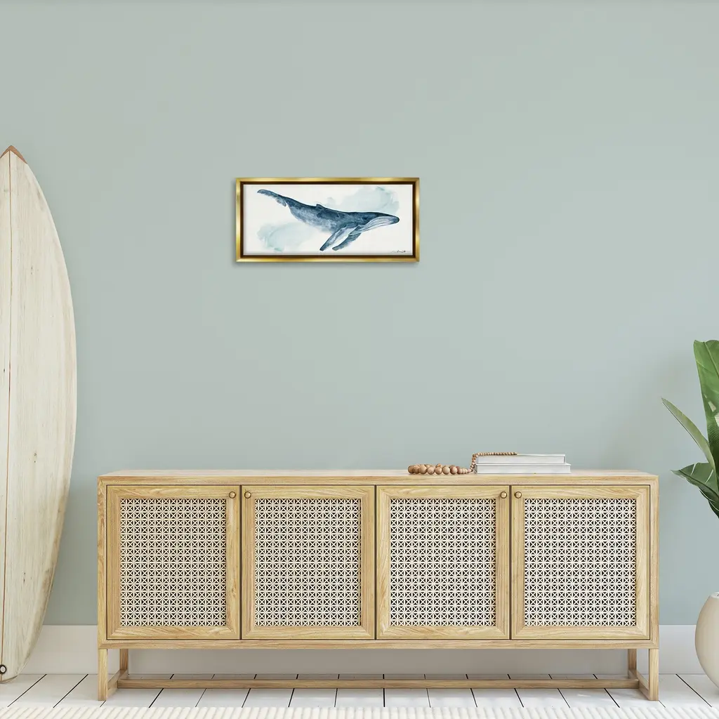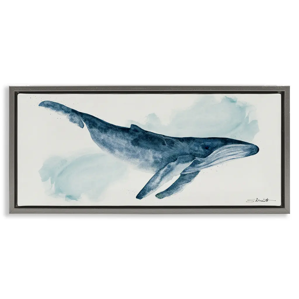 Elevate your home or office to the next level with Stupell Framed Floating Canvas Wall Art. Our premium hand-stretched canvas is mounted securely into a sturdy lightweight frame. The museum-style gap between the wrapped canvas and the box frame gives the illusion of floating artwork. Stupell Wall Art is made in the USA.Features: Dimensions: 25 x 1.7 x 11 Frame, 24 x 1.5 x 10 Canvas ArtFloating Frame Canvas Products are available in sizes 25"x11" and 31"x14". All Floating Frame Canvas Products have a 1.7" Depth.Wall Art is Ready to Hang with Hardware Free Hanging. No Installation required. For Easy Set Up Lean or Layer Artwork on Shelf or Against Wall. Artwork is Permently Fixed into the Frame.Our elevated 1.7" Thick Floating Frame is the perfect complement to our canvas style Wall Art. We use only the highest quality inks in house with industry leading printing solutions. Canvas is hand stretched over a durable wood foundation and then mounted securly into a Modern Box Frame. Made in the USA.Artwork Relates To: Whale, Marine Life, Ocean, Blue, Water Color, Humpback, NauticalDesign by Stephanie Workman Marrott
