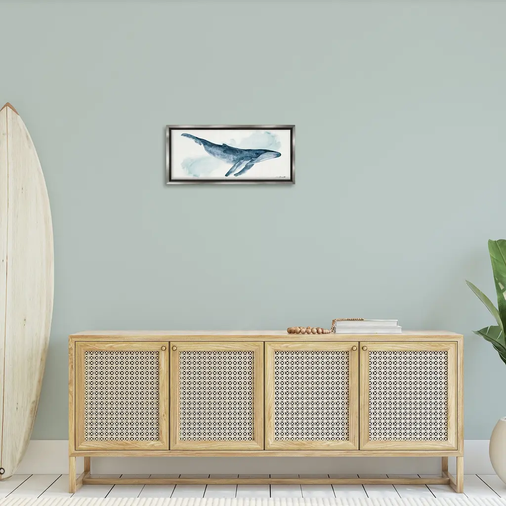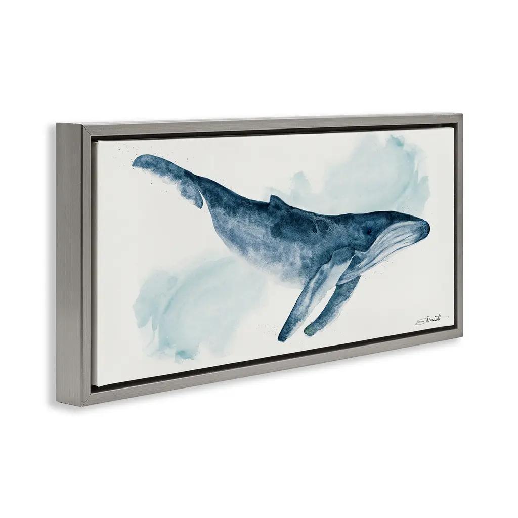 Elevate your home or office to the next level with Stupell Framed Floating Canvas Wall Art. Our premium hand-stretched canvas is mounted securely into a sturdy lightweight frame. The museum-style gap between the wrapped canvas and the box frame gives the illusion of floating artwork. Stupell Wall Art is made in the USA.Features: Dimensions: 25 x 1.7 x 11 Frame, 24 x 1.5 x 10 Canvas ArtFloating Frame Canvas Products are available in sizes 25"x11" and 31"x14". All Floating Frame Canvas Products have a 1.7" Depth.Wall Art is Ready to Hang with Hardware Free Hanging. No Installation required. For Easy Set Up Lean or Layer Artwork on Shelf or Against Wall. Artwork is Permently Fixed into the Frame.Our elevated 1.7" Thick Floating Frame is the perfect complement to our canvas style Wall Art. We use only the highest quality inks in house with industry leading printing solutions. Canvas is hand stretched over a durable wood foundation and then mounted securly into a Modern Box Frame. Made in the USA.Artwork Relates To: Whale, Marine Life, Ocean, Blue, Water Color, Humpback, NauticalDesign by Stephanie Workman Marrott