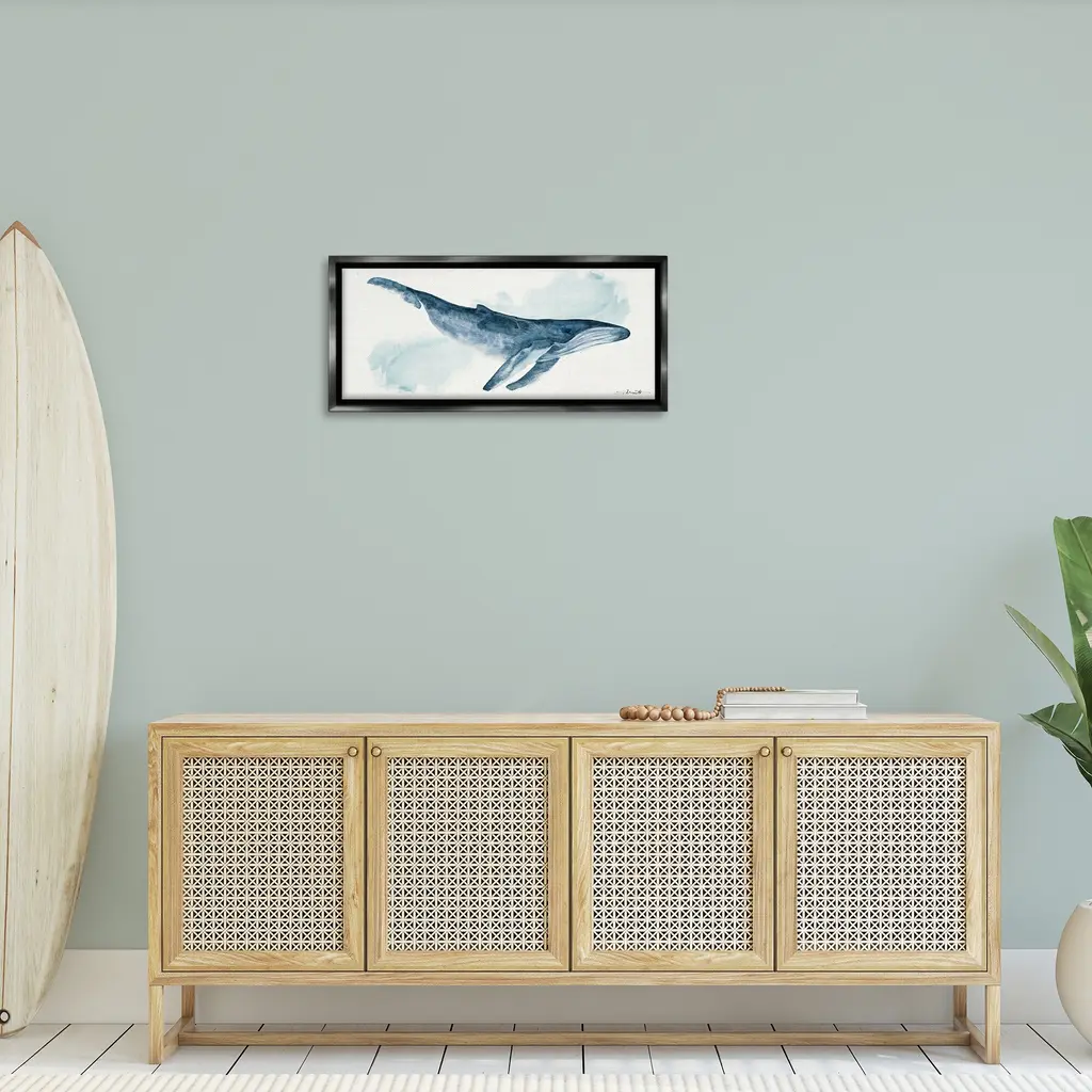 Elevate your home or office to the next level with Stupell Framed Floating Canvas Wall Art. Our premium hand-stretched canvas is mounted securely into a sturdy lightweight frame. The museum-style gap between the wrapped canvas and the box frame gives the illusion of floating artwork. Stupell Wall Art is made in the USA.Features: Dimensions: 25 x 1.7 x 11 Frame, 24 x 1.5 x 10 Canvas ArtFloating Frame Canvas Products are available in sizes 25"x11" and 31"x14". All Floating Frame Canvas Products have a 1.7" Depth.Wall Art is Ready to Hang with Hardware Free Hanging. No Installation required. For Easy Set Up Lean or Layer Artwork on Shelf or Against Wall. Artwork is Permently Fixed into the Frame.Our elevated 1.7" Thick Floating Frame is the perfect complement to our canvas style Wall Art. We use only the highest quality inks in house with industry leading printing solutions. Canvas is hand stretched over a durable wood foundation and then mounted securly into a Modern Box Frame. Made in the USA.Artwork Relates To: Whale, Marine Life, Ocean, Blue, Water Color, Humpback, NauticalDesign by Stephanie Workman Marrott