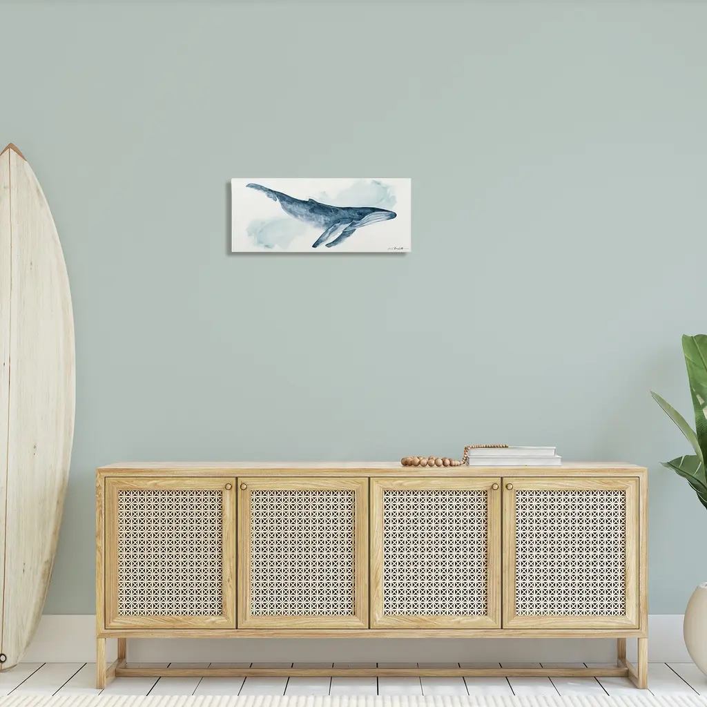 Stupell Nautical Humpback Whale Marine Animal Blue Watercolor Painting Canvas Wall Art - White - 24 X 10