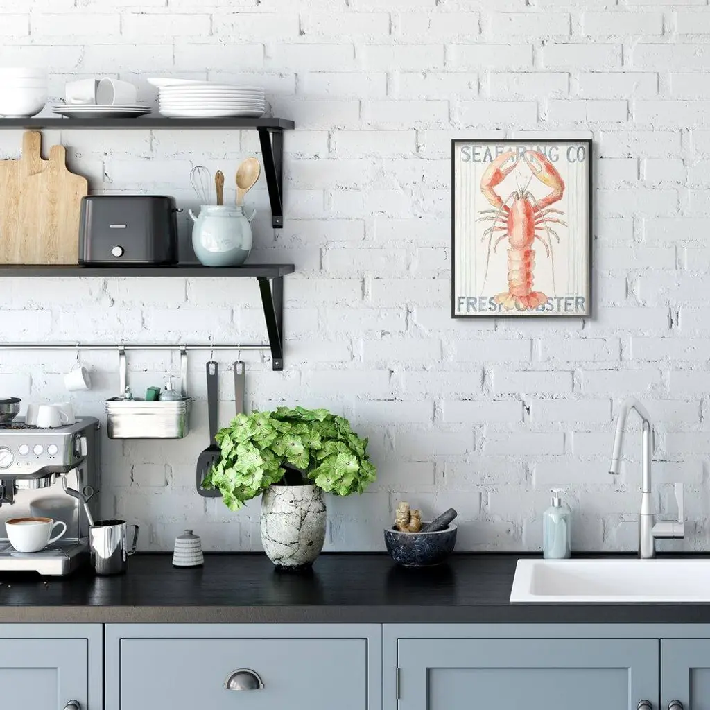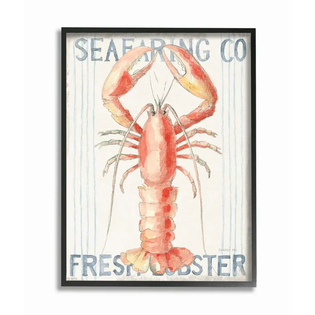Stupell Nautical Lobster Seafood Sign Blue Red Watercolor Framed Wall Art - 16 X 20 - Grey