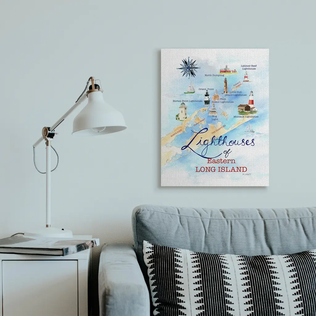 Stupell Nautical Map Of Eastern Long Island Lighthouses Canvas Wall Art - 24 X 30