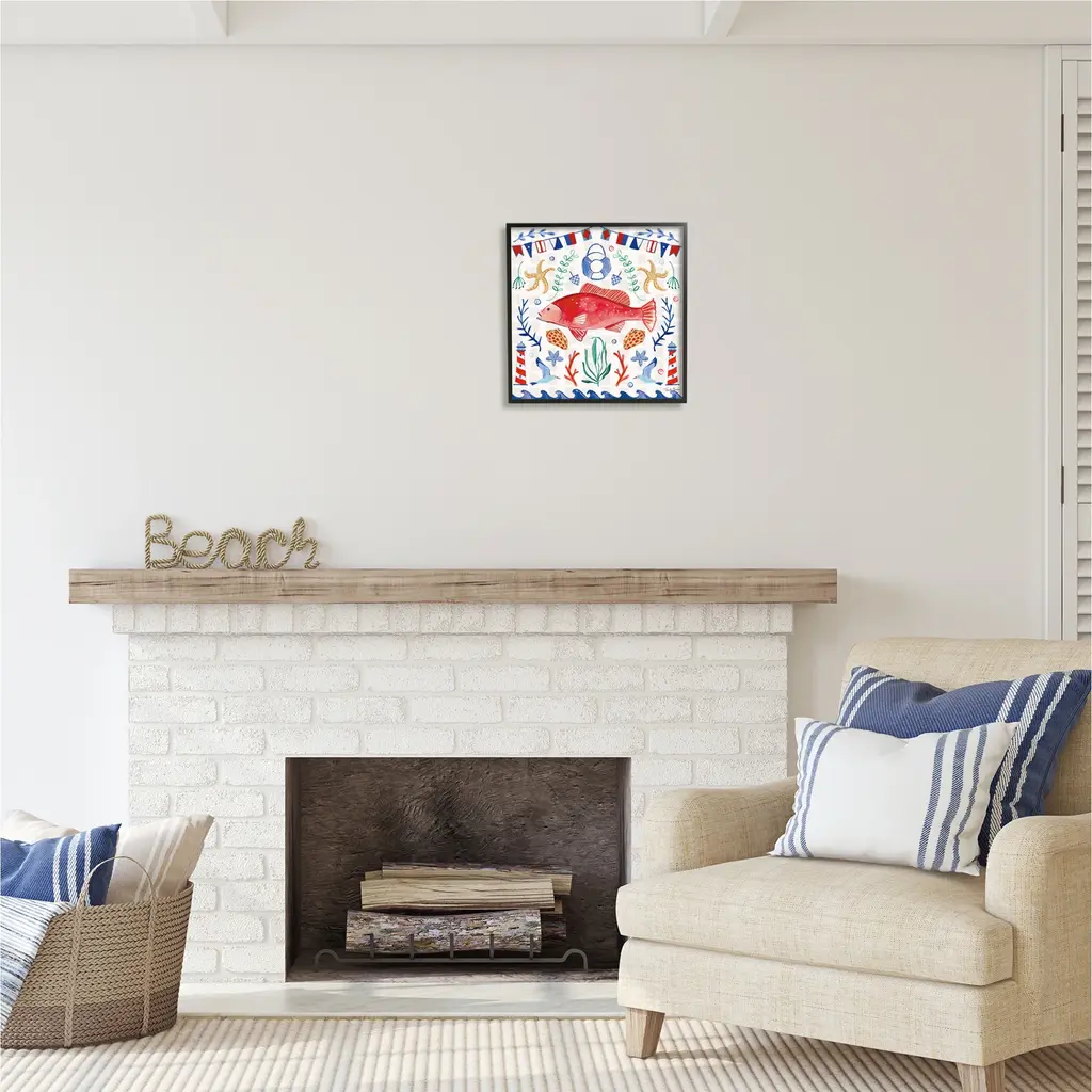 Add dimension to any room with our textured Framed Giclee Artwork. Our framed artwork is securely mounted into a 1.5-inch thick wood grain frame and ready to hang. Frames are available in three alluring styles: black, gray farmhouse and white. In addition, you should check out our oversized options if you want a statement piece. Stupell Wall Art is made in the USA.Features: Dimensions: 12 x 1.5 x 12 FramedFramed Giclee Sizes Include Standard: 12 x 1.5 x 12 Large: 17 x 1.5 x 17 Oversized: 24 x 1.5 x 24Wall Art is Ready to Hang with Hardware Free Hanging. No installation required. For Easy Set Up Lean or Layer Artwork on Shelf or Against Wall.Our giclée prints are carefully mounted on a durable MDF backing, and then perfectly finished in a 1.5 inch thick woodgrain frame. Mounted frame colors include black, gray farmhouse and white. Made In USA.Artwork Relates To: Animal, Sea Life, Nautical, Anchor, Coral, Seaweed, Seashell, FishDesign by Farida Zaman