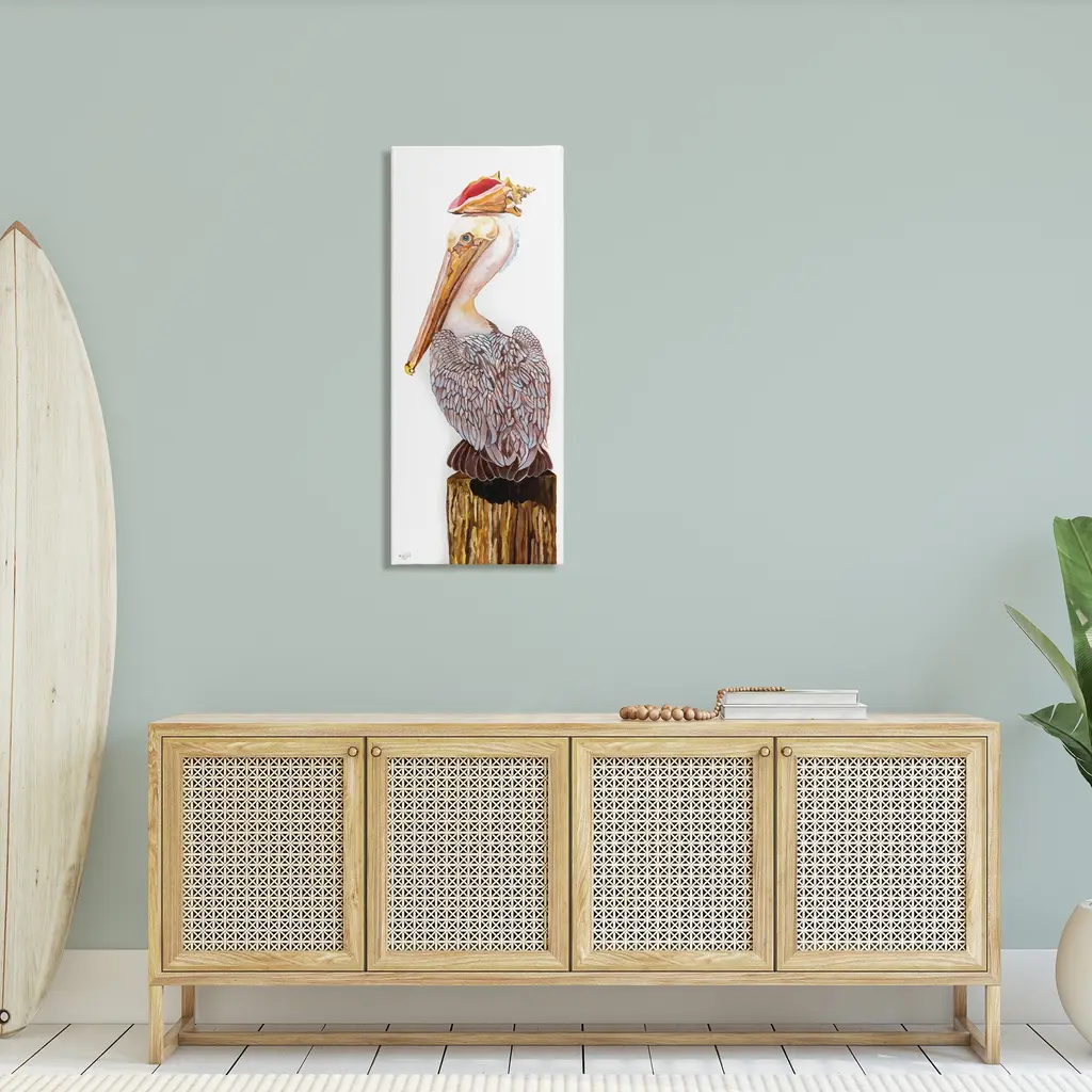 Stupell Nautical Pelican Beach Post With Sea Shell Canvas Wall Art - 17 X 40