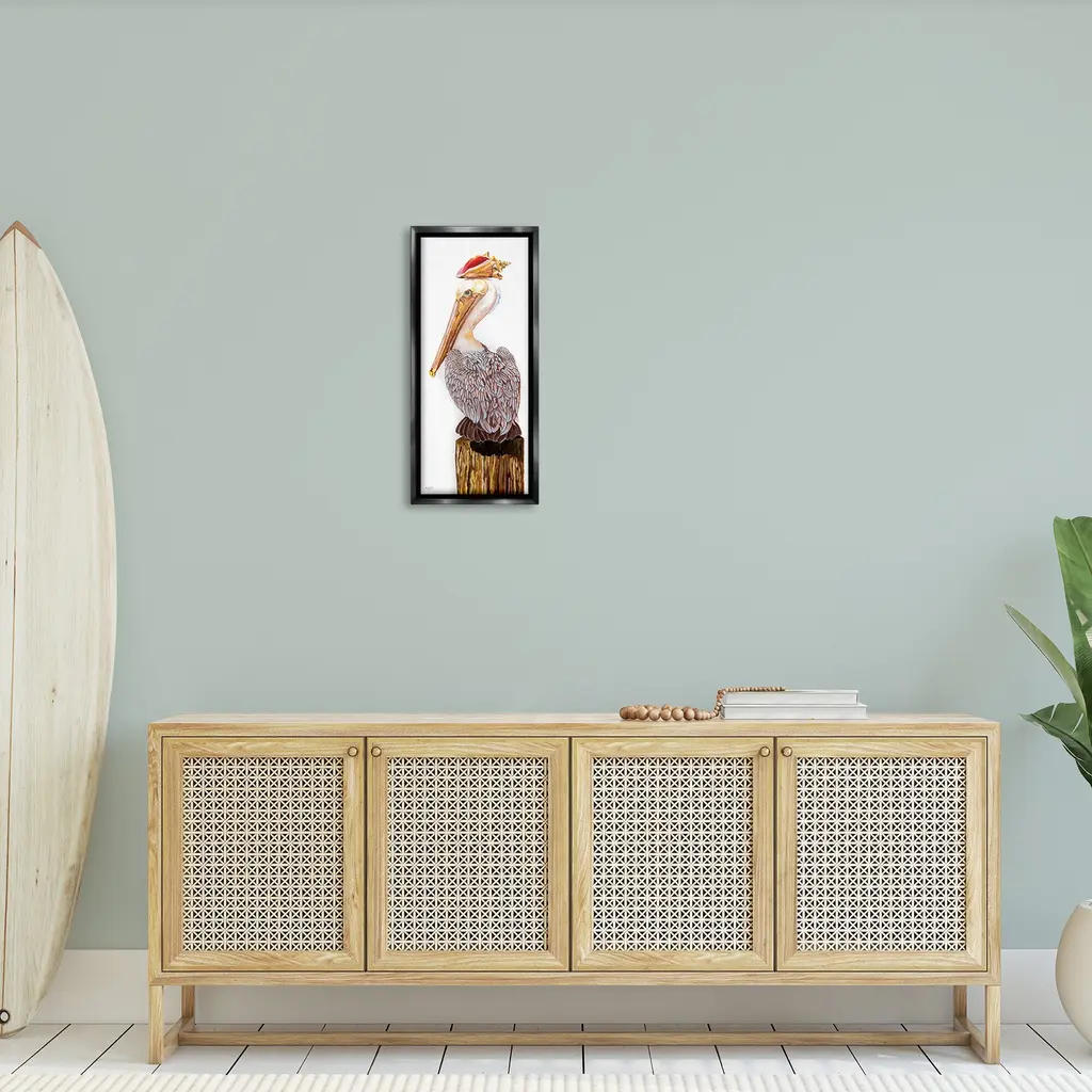 Elevate your home or office to the next level with Stupell Framed Floating Canvas Wall Art. Our premium hand-stretched canvas is mounted securely into a sturdy lightweight frame. The museum-style gap between the wrapped canvas and the box frame gives the illusion of floating artwork. Stupell Wall Art is made in the USA.Features: Dimensions: 11 x 1.7 x 25 Frame, 10 x 1.5 x 24 Canvas ArtFloating Frame Canvas Products are available in sizes 11"x25" and 14"x31". All Floating Frame Canvas Products have a 1.7" Depth.Wall Art is Ready to Hang with Hardware Free Hanging. No Installation required. For Easy Set Up Lean or Layer Artwork on Shelf or Against Wall. Artwork is Permently Fixed into the Frame.Our elevated 1.7" Thick Floating Frame is the perfect complement to our canvas style Wall Art. We use only the highest quality inks in house with industry leading printing solutions. Canvas is hand stretched over a durable wood foundation and then mounted securly into a Modern Box Frame. Made in the USA.Artwork Relates To: Animal, Bird, Nautical, Pelican, Seashell, Beach, MaritimeDesign by Diane Fifer