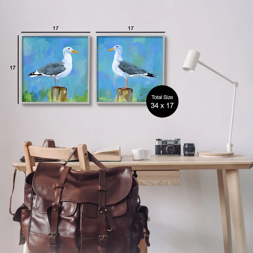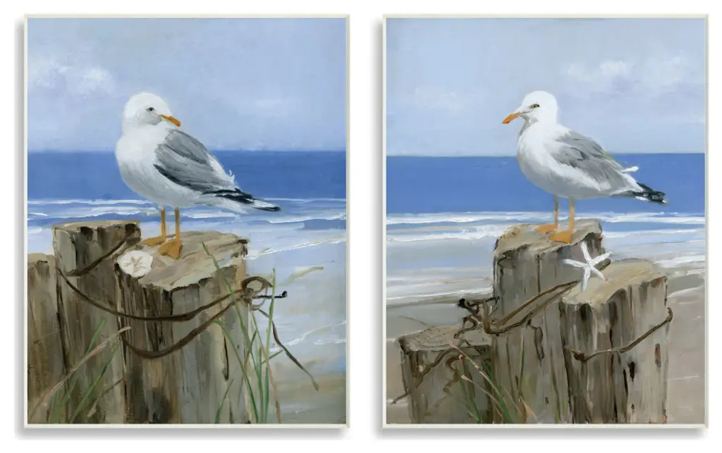 Fill any space in your home or office with our Framed Wall Art Sets. Our framed artwork is securely mounted into a 1.5-inch thick wood grain frame and ready to hang. Frames are available in three alluring styles: black, gray farmhouse and white. Stupell Wall Art is made in the USA.Features: Dimensions: 2 Piece Set, Each Panel is 12 x 1.5 x 12 FramedFramed Giclee Set Sizes Include Standard: 2pc, Each is 12 x 1.5 x 12 Large: 2pc, Each is 17 x 1.5 x 17 Oversized: 2pc, Each is 24 x 1.5 x 24Wall Art is Ready to Hang with Hardware Free Hanging. No installation required. For Easy Set Up Lean or Layer Artwork on Shelf or Against Wall.Curated Wall Art Sets make it easy for you complete the theme for any room. Our giclée prints are carefully mounted on a durable MDF backing, and then perfectly finished in a 1.5 inch thick woodgrain frame. Mounted frame colors include black, gray farmhouse and white. Made In USA.Artwork Relates To: Animal, Beak, Bird, Seagull, Landscape, BeachDesign by Victoria Barnes