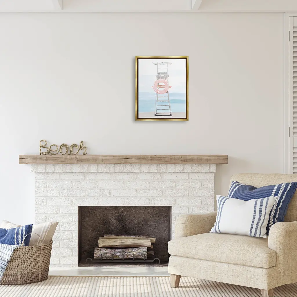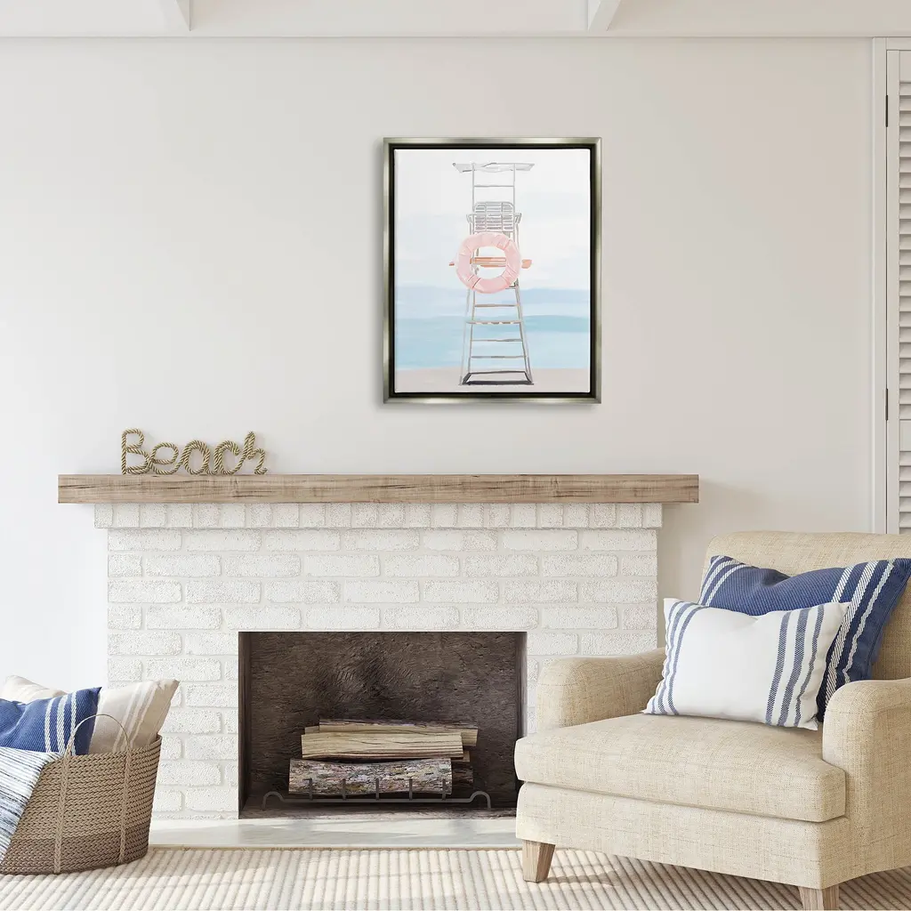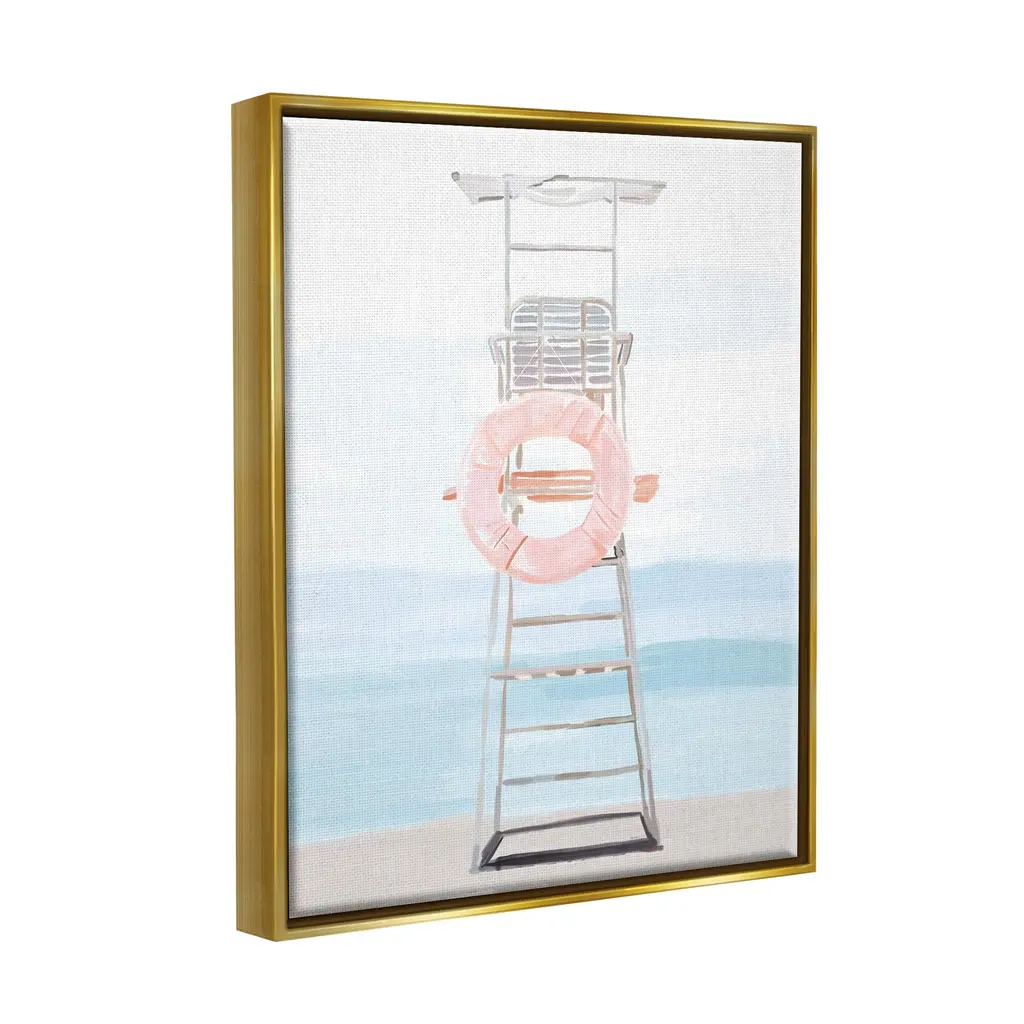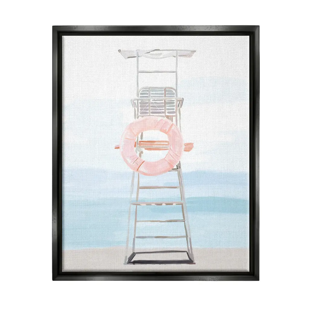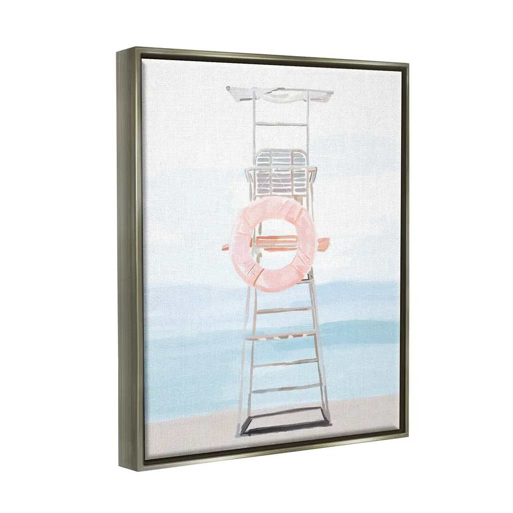 Elevate your home or office to the next level with Stupell Framed Floating Canvas Wall Art. Our premium hand-stretched canvas is mounted securely into a sturdy lightweight frame. The museum-style gap between the wrapped canvas and the box frame gives the illusion of floating artwork. Stupell Wall Art is made in the USA.Features: Dimensions: 17 x 1.7 x 21 Frame, 16 x 1.5 x 20 Canvas ArtFloating Frame Sizes Include Standard: 17 x 1.7 x 21 Oversized: 25 x 1.7 x 31Wall Art is Ready to Hang - No Installation or Hardware Needed. For Easy Set Up Lean or Layer Artwork on Shelf or Against Wall.Our elevated 1.7" Thick Floating Frame is the perfect complement to our canvas style Wall Art. We use only the highest quality inks in house with industry leading printing solutions. Canvas is hand stretched over a durable wood foundation and then mounted securly into a Modern Box Frame. Made in the USA.Artwork Relates To: Water, Life Buoy, Nature, Sea, Beach, Coast, Shoreline, NauticalDesign by Amelia Noyes