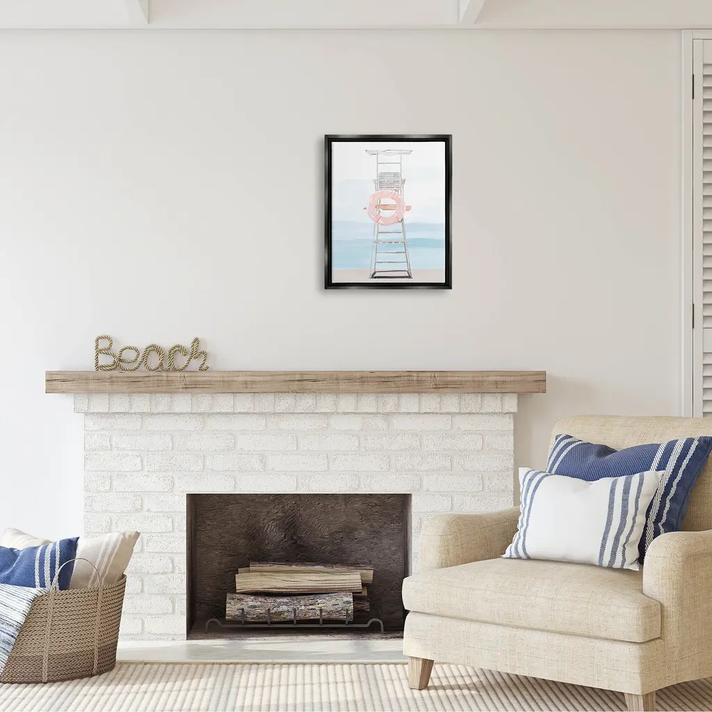 Stupell Nautical Pink Beach Lifebuoy Shore Framed Floater Canvas Wall Art By Amelia Noyes - 16 X 20 - Black