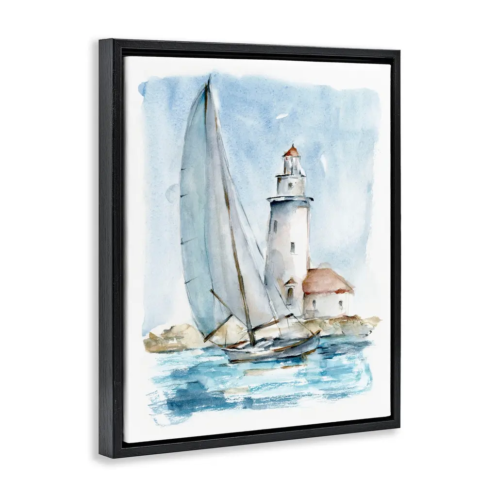 Elevate your home or office to the next level with Stupell Framed Floating Canvas Wall Art. Our premium hand-stretched canvas is mounted securely into a sturdy lightweight frame. The museum-style gap between the wrapped canvas and the box frame gives the illusion of floating artwork. Stupell Wall Art is made in the USA.Features: Dimensions: 17 x 1.7 x 21 Frame, 16 x 1.5 x 20 Canvas ArtFloating Frame Sizes Include Standard: 17 x 1.7 x 21 Oversized: 25 x 1.7 x 31Wall Art is Ready to Hang - No Installation or Hardware Needed. For Easy Set Up Lean or Layer Artwork on Shelf or Against Wall.Our elevated 1.7" Thick Floating Frame is the perfect complement to our canvas style Wall Art. We use only the highest quality inks in house with industry leading printing solutions. Canvas is hand stretched over a durable wood foundation and then mounted securly into a Modern Box Frame. Made in the USA.Artwork Relates To: Boat, Sailboat, Painting, Beacon, Lighthouse, Coastal, Nautical, BeachDesign by Ethan Harper