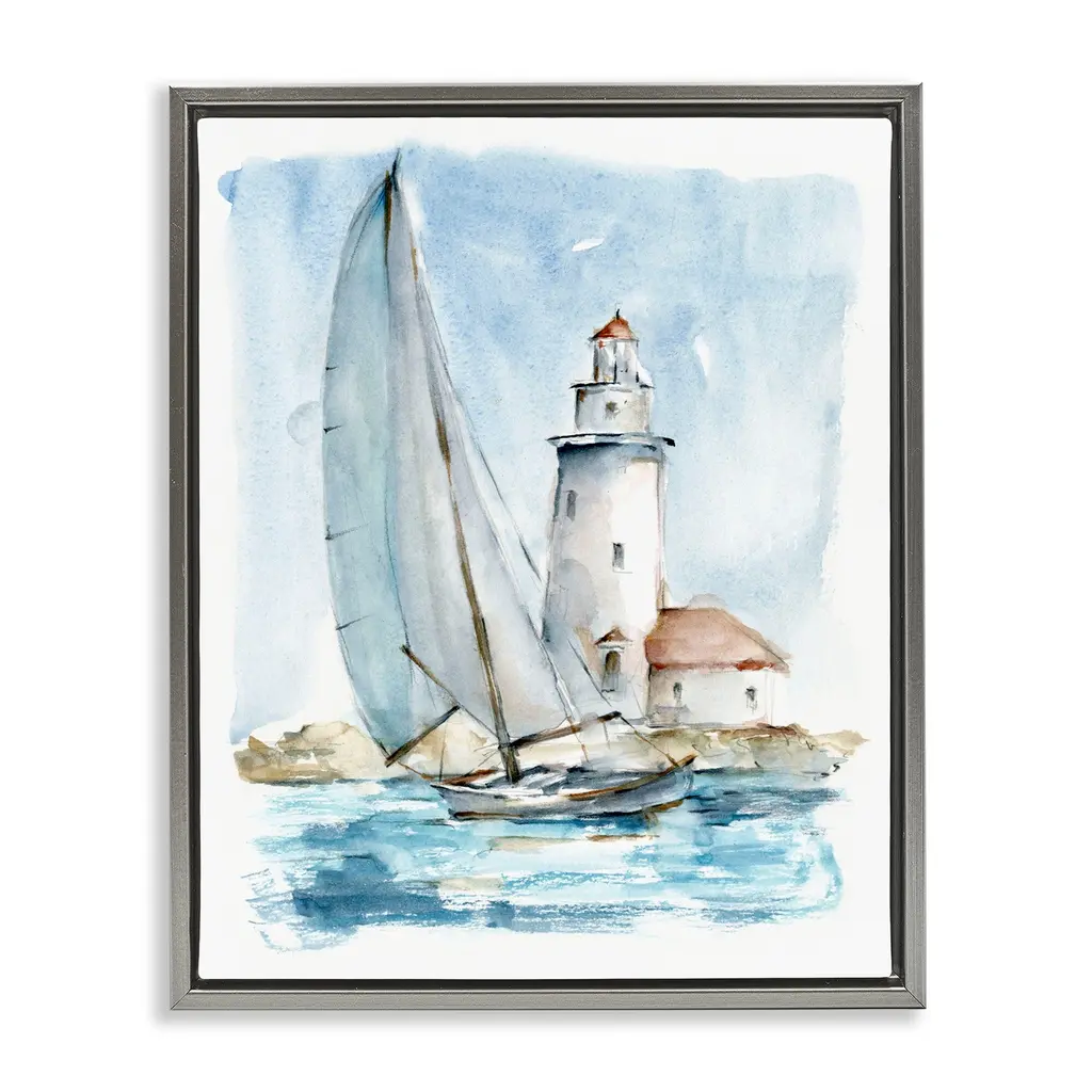 Add dimension to any room with our textured Framed Giclee Artwork. Our framed artwork is securely mounted into a 1.5-inch thick wood grain frame and ready to hang. Frames are available in three alluring styles: black, gray farmhouse and white. In addition, you should check out our oversized options if you want a statement piece. Stupell Wall Art is made in the USA.Features: Dimensions: 11 x 1.5 x 14 FramedFramed Giclee Sizes Include Standard: 11 x 1.5 x 14 Large: 16 x 1.5 x 20 Oversized: 24 x 1.5 x 30Wall Art is Ready to Hang - No Installation or Hardware Needed. For Easy Set Up Lean or Layer Artwork on Shelf or Against Wall.Our giclée prints are carefully mounted on a durable MDF backing, and then perfectly finished in a 1.5 inch thick woodgrain frame. Mounted frame colors include black, gray farmhouse and white. Made In USA.Artwork Relates To: Boat, Sailboat, Painting, Beacon, Lighthouse, Coastal, Nautical, BeachDesign by Ethan Harper