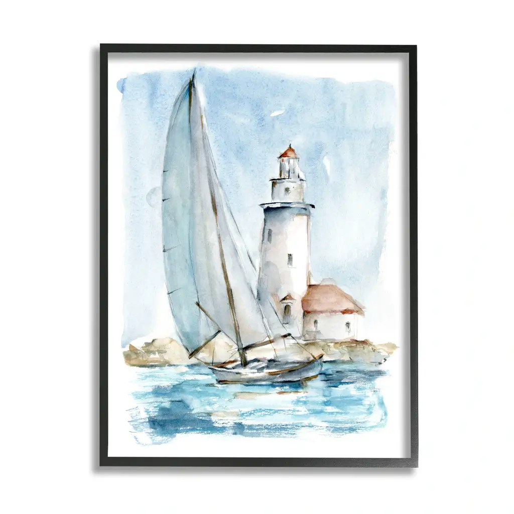 Add dimension to any room with our textured Framed Giclee Artwork. Our framed artwork is securely mounted into a 1.5-inch thick wood grain frame and ready to hang. Frames are available in three alluring styles: black, gray farmhouse and white. In addition, you should check out our oversized options if you want a statement piece. Stupell Wall Art is made in the USA.Features: Dimensions: 11 x 1.5 x 14 FramedFramed Giclee Sizes Include Standard: 11 x 1.5 x 14 Large: 16 x 1.5 x 20 Oversized: 24 x 1.5 x 30Wall Art is Ready to Hang - No Installation or Hardware Needed. For Easy Set Up Lean or Layer Artwork on Shelf or Against Wall.Our giclée prints are carefully mounted on a durable MDF backing, and then perfectly finished in a 1.5 inch thick woodgrain frame. Mounted frame colors include black, gray farmhouse and white. Made In USA.Artwork Relates To: Boat, Sailboat, Painting, Beacon, Lighthouse, Coastal, Nautical, BeachDesign by Ethan Harper