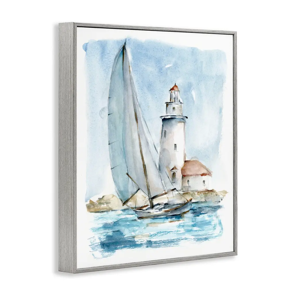 Add dimension to any room with our textured Framed Giclee Artwork. Our framed artwork is securely mounted into a 1.5-inch thick wood grain frame and ready to hang. Frames are available in three alluring styles: black, gray farmhouse and white. In addition, you should check out our oversized options if you want a statement piece. Stupell Wall Art is made in the USA.Features: Dimensions: 11 x 1.5 x 14 FramedFramed Giclee Sizes Include Standard: 11 x 1.5 x 14 Large: 16 x 1.5 x 20 Oversized: 24 x 1.5 x 30Wall Art is Ready to Hang - No Installation or Hardware Needed. For Easy Set Up Lean or Layer Artwork on Shelf or Against Wall.Our giclée prints are carefully mounted on a durable MDF backing, and then perfectly finished in a 1.5 inch thick woodgrain frame. Mounted frame colors include black, gray farmhouse and white. Made In USA.Artwork Relates To: Boat, Sailboat, Painting, Beacon, Lighthouse, Coastal, Nautical, BeachDesign by Ethan Harper