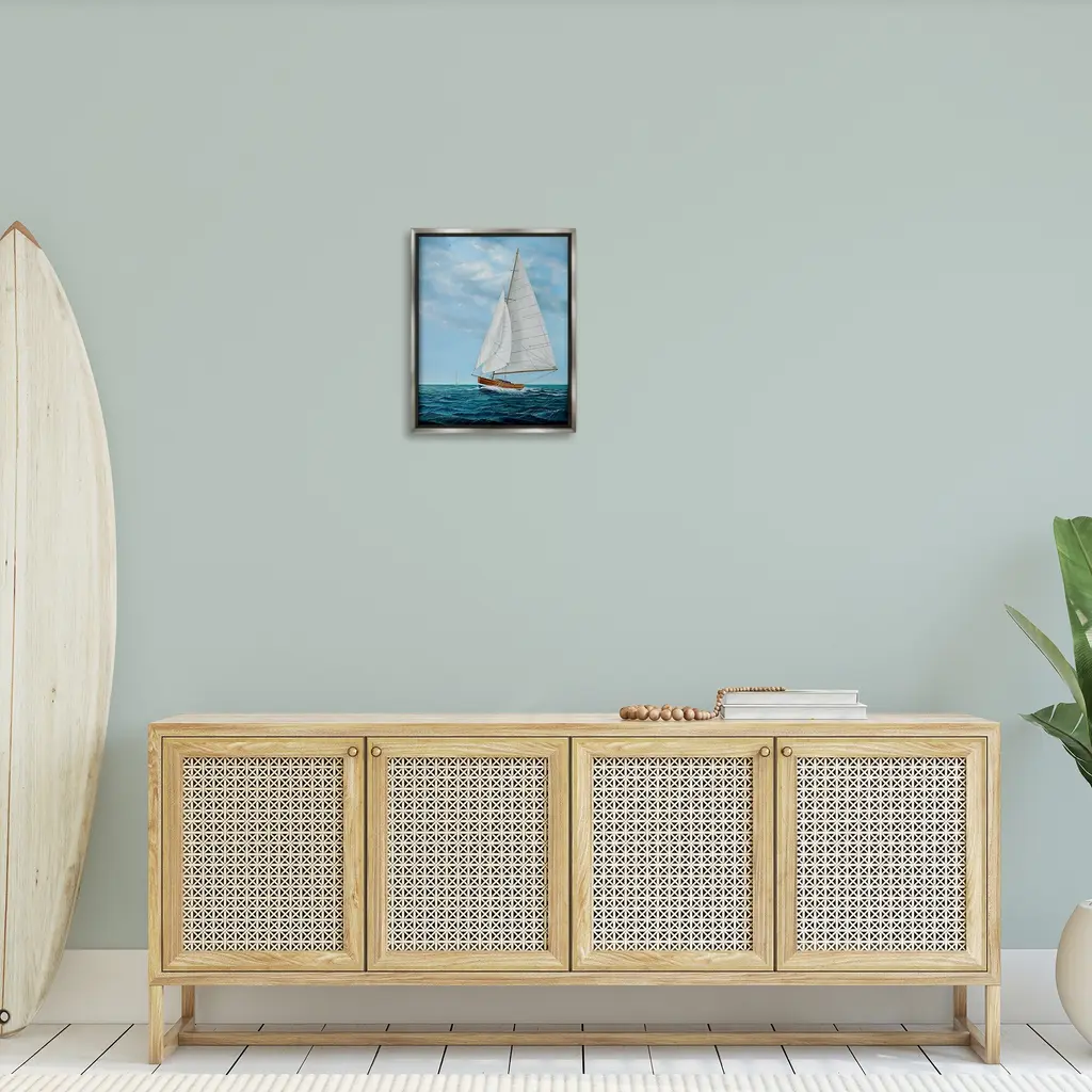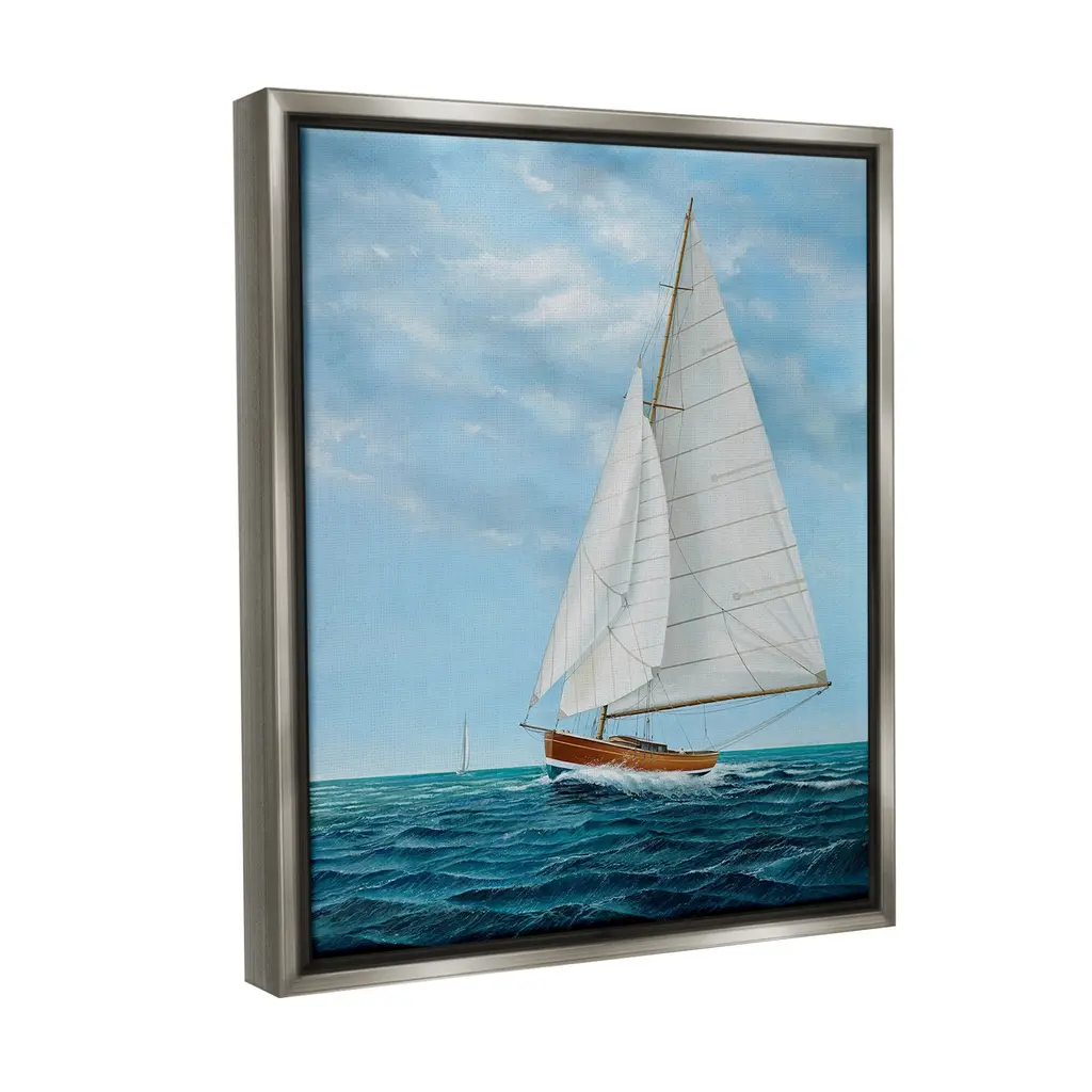 Elevate your home or office to the next level with Stupell Framed Floating Canvas Wall Art. Our premium hand-stretched canvas is mounted securely into a sturdy lightweight frame. The museum-style gap between the wrapped canvas and the box frame gives the illusion of floating artwork. Stupell Wall Art is made in the USA.Features: Dimensions: 17 x 1.7 x 21 Frame, 16 x 1.5 x 20 Canvas ArtFloating Frame Canvas Products are available in sizes 17"x21" and 25"x31". All Floating Frame Canvas Products have a 1.7" Depth.Wall Art is Ready to Hang with Hardware Free Hanging. No Installation required. For Easy Set Up Lean or Layer Artwork on Shelf or Against Wall. Artwork is Permently Fixed into the Frame.Our elevated 1.7" Thick Floating Frame is the perfect complement to our canvas style Wall Art. We use only the highest quality inks in house with industry leading printing solutions. Canvas is hand stretched over a durable wood foundation and then mounted securly into a Modern Box Frame. Made in the USA.Artwork Relates To: Boat, Sailboat, Watercraft, Yacht, Maritime, Nautical, Ocean, Sea, WavesDesign by Max Maxx