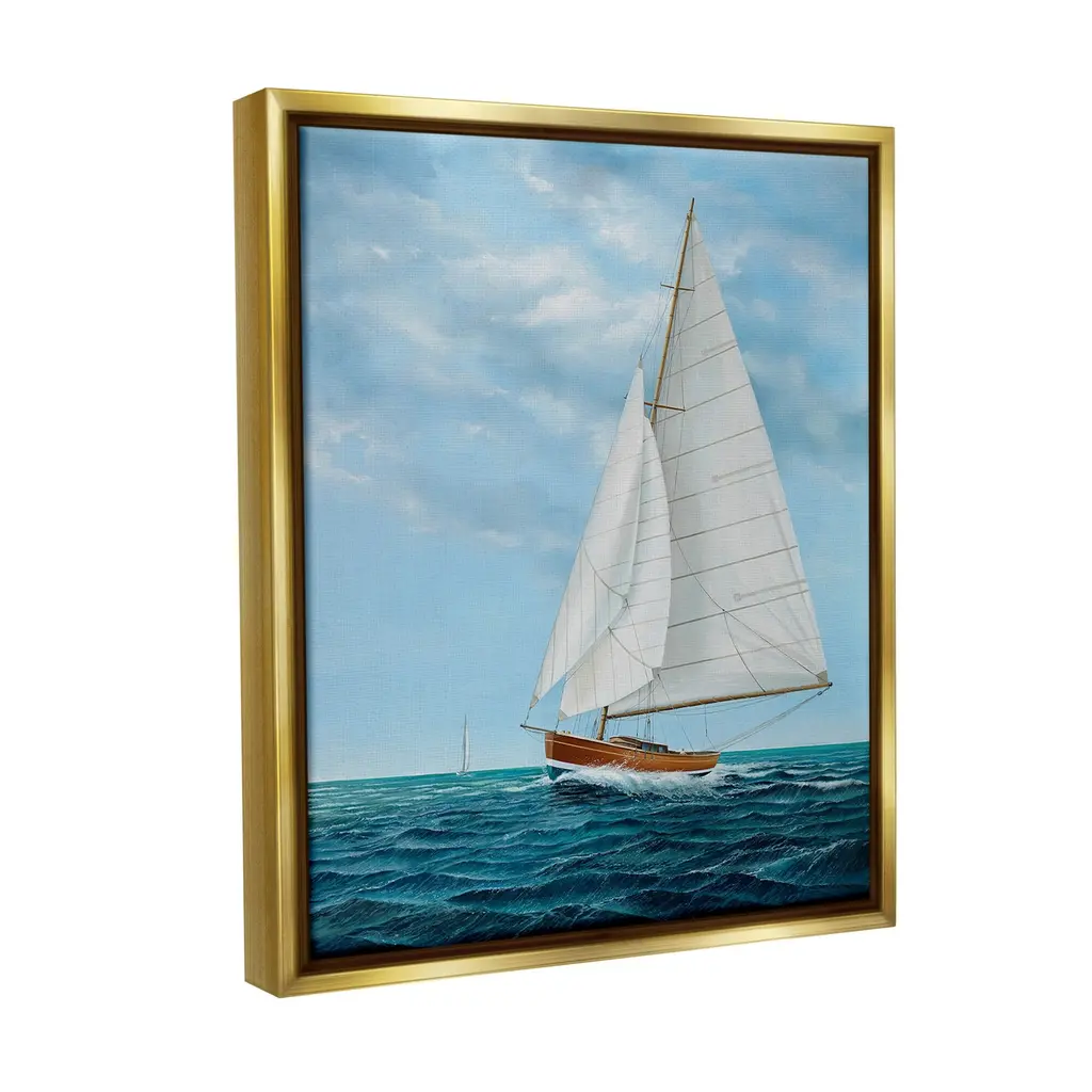 Elevate your home or office to the next level with Stupell Framed Floating Canvas Wall Art. Our premium hand-stretched canvas is mounted securely into a sturdy lightweight frame. The museum-style gap between the wrapped canvas and the box frame gives the illusion of floating artwork. Stupell Wall Art is made in the USA.Features: Dimensions: 17 x 1.7 x 21 Frame, 16 x 1.5 x 20 Canvas ArtFloating Frame Canvas Products are available in sizes 17"x21" and 25"x31". All Floating Frame Canvas Products have a 1.7" Depth.Wall Art is Ready to Hang with Hardware Free Hanging. No Installation required. For Easy Set Up Lean or Layer Artwork on Shelf or Against Wall. Artwork is Permently Fixed into the Frame.Our elevated 1.7" Thick Floating Frame is the perfect complement to our canvas style Wall Art. We use only the highest quality inks in house with industry leading printing solutions. Canvas is hand stretched over a durable wood foundation and then mounted securly into a Modern Box Frame. Made in the USA.Artwork Relates To: Boat, Sailboat, Watercraft, Yacht, Maritime, Nautical, Ocean, Sea, WavesDesign by Max Maxx
