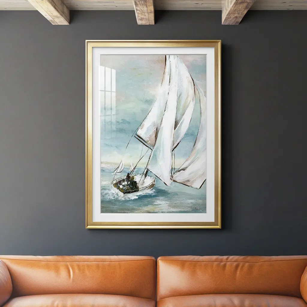 Stupell Nautical Sailboat Waves Framed Floater Canvas Wall Art Design By Max Maxx - 25 X 31 - Gold