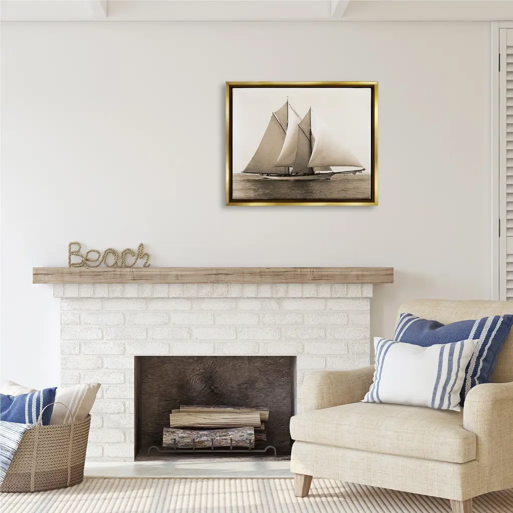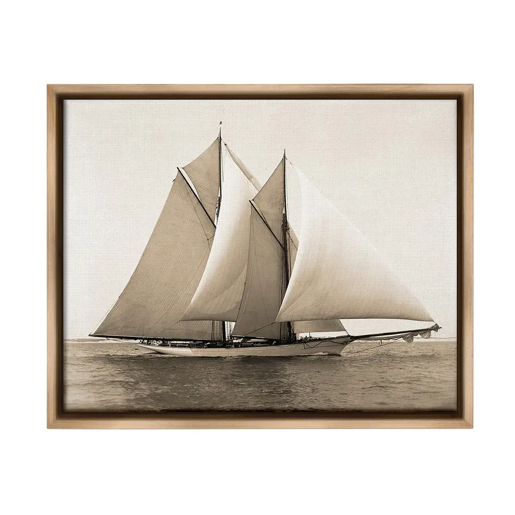 Elevate your home or office to the next level with Stupell Framed Floating Canvas Wall Art. Our premium hand-stretched canvas is mounted securely into a sturdy lightweight frame. The museum-style gap between the wrapped canvas and the box frame gives the illusion of floating artwork. Stupell Wall Art is made in the USA.Features: Dimensions: 21 x 1.7 x 17 Frame, 20 x 1.5 x 16 Canvas ArtFloating Frame Sizes Include Standard: 21 x 1.7 x 17 Oversized: 31 x 1.7 x 25Wall Art is Ready to Hang with Hardware Free Hanging. No installation required. For Easy Set Up Lean or Layer Artwork on Shelf or Against Wall.Our elevated 1.7" Thick Floating Frame is the perfect complement to our canvas style Wall Art. We use only the highest quality inks in house with industry leading printing solutions. Canvas is hand stretched over a durable wood foundation and then mounted securly into a Modern Box Frame. Made in the USA.Artwork Relates To: Boat, Sailboat, Transportation, Vehicle, Yacht, Watercraft, Ocean, Nautical, MaritimeDesign by Graffi*Tee Studios