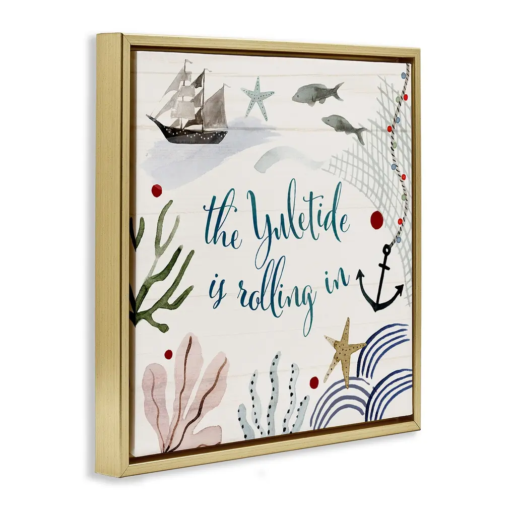 Stupell Nautical Yuletide Christmas Phrase Framed Floater Canvas Wall Art Design By Victoria Barnes - 18 X 18 - Gold