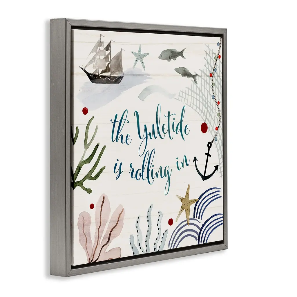 Stupell Nautical Yuletide Christmas Phrase Framed Floater Canvas Wall Art Design By Victoria Barnes - 18 X 18 - Grey